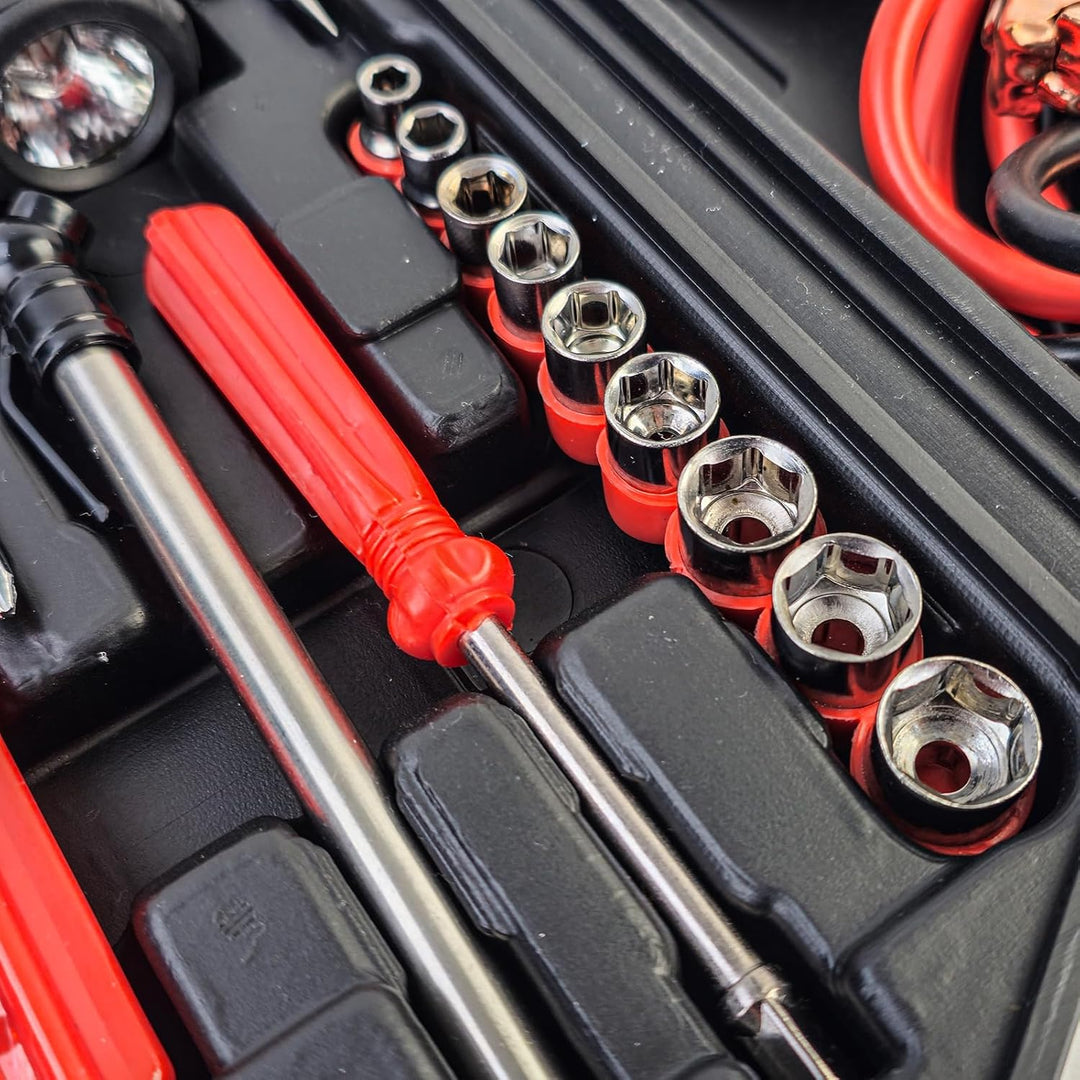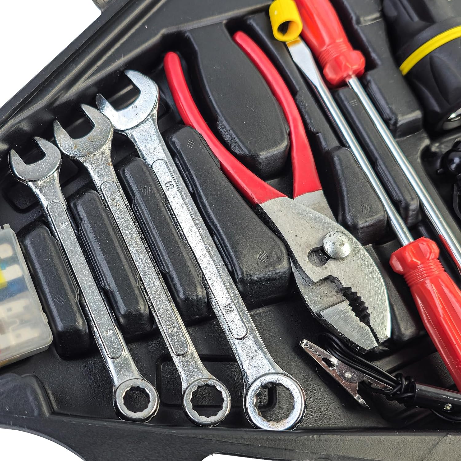 - Das Kfz Bordwerkzeug Set bietet Ihnen alles, was Sie für die grundlegende Fahrzeugwartung und Reparaturen benötigen.. Praktische Aufbewahrung: Der Hartschalenkoffer sorgt dafür, dass das Werkzeug ordentlich und griffbereit aufbewahrt wird, sodass Sie