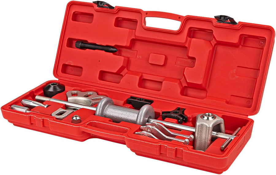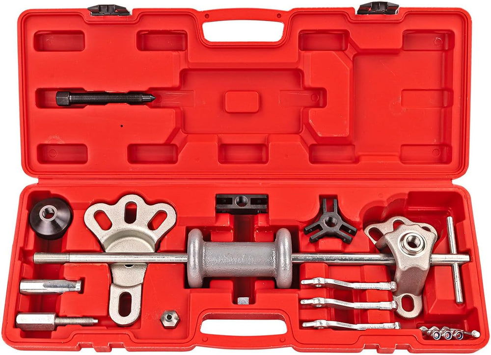 - 1x Gleithammer + Stange mit T-Griff, 2x Adapter für Radnabe 4, 5 und 6-Loch Radbolzen,1x Flach, 1x Hoch, 1x Vorrichtung für 2 Arm Abzieher für innen und aussen, 1x Vorrichtung für 3 Arm Abzieher für innen und aussen, Abzieher für Lagerschalen,