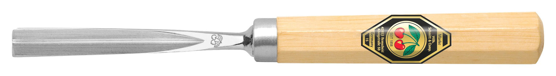 - gerades Kerbschnitzbeitel mit V-förmiger Schneide und achtkantigem Weissbuchenheft