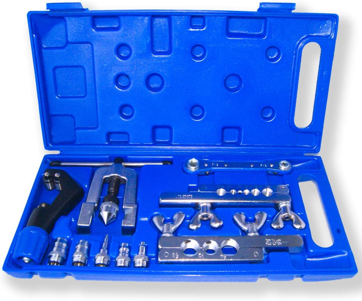 - Inkl. Bördelwerkzeug, selbstzentrierend, mit leicht austauschbarem Stahlgewinde Zwei Schlauchschellen in Zoll mit 9 Metriken: 1/8 Zoll, 3/16 Zoll, 5/16 Zoll, 3/8 Zoll, 7/16 Zoll, 1/2 Zoll, 5/8 Zoll, 3/4 Zoll