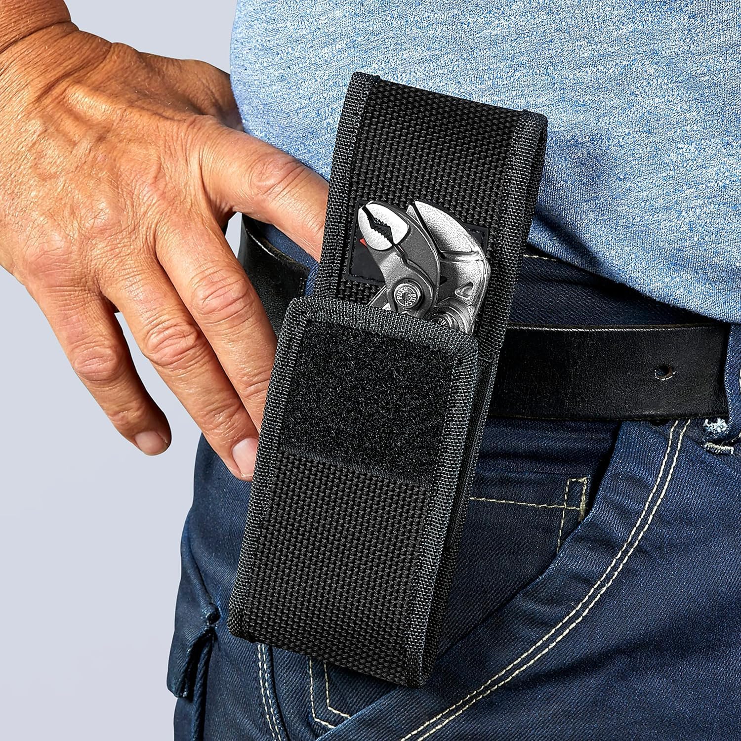- Werkzeugtasche aus strapazierfähigem Polyestergewebe, mit Klettverschluss und Gürtelclip