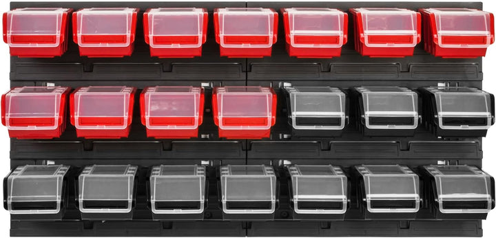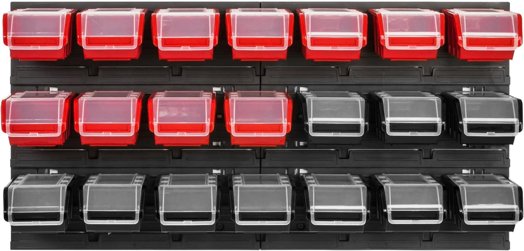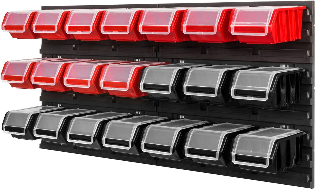 - · EINFACH ERWEITERBAR DURCH MODULAREN AUFBAU – Das Lagersystem kann man durch das Hinzufügen von weiteren Wandplatten, Werkzeugständern, Haltern oder Containern an den vorhandenen Raum anpassen