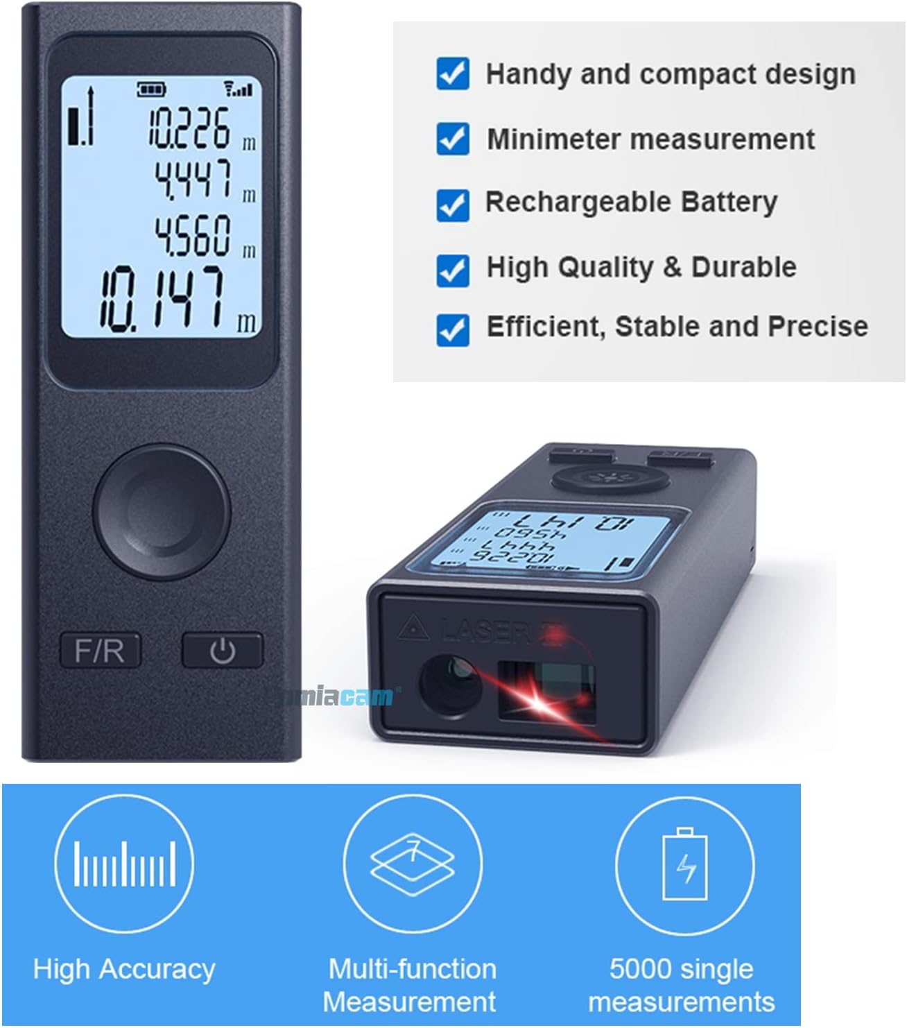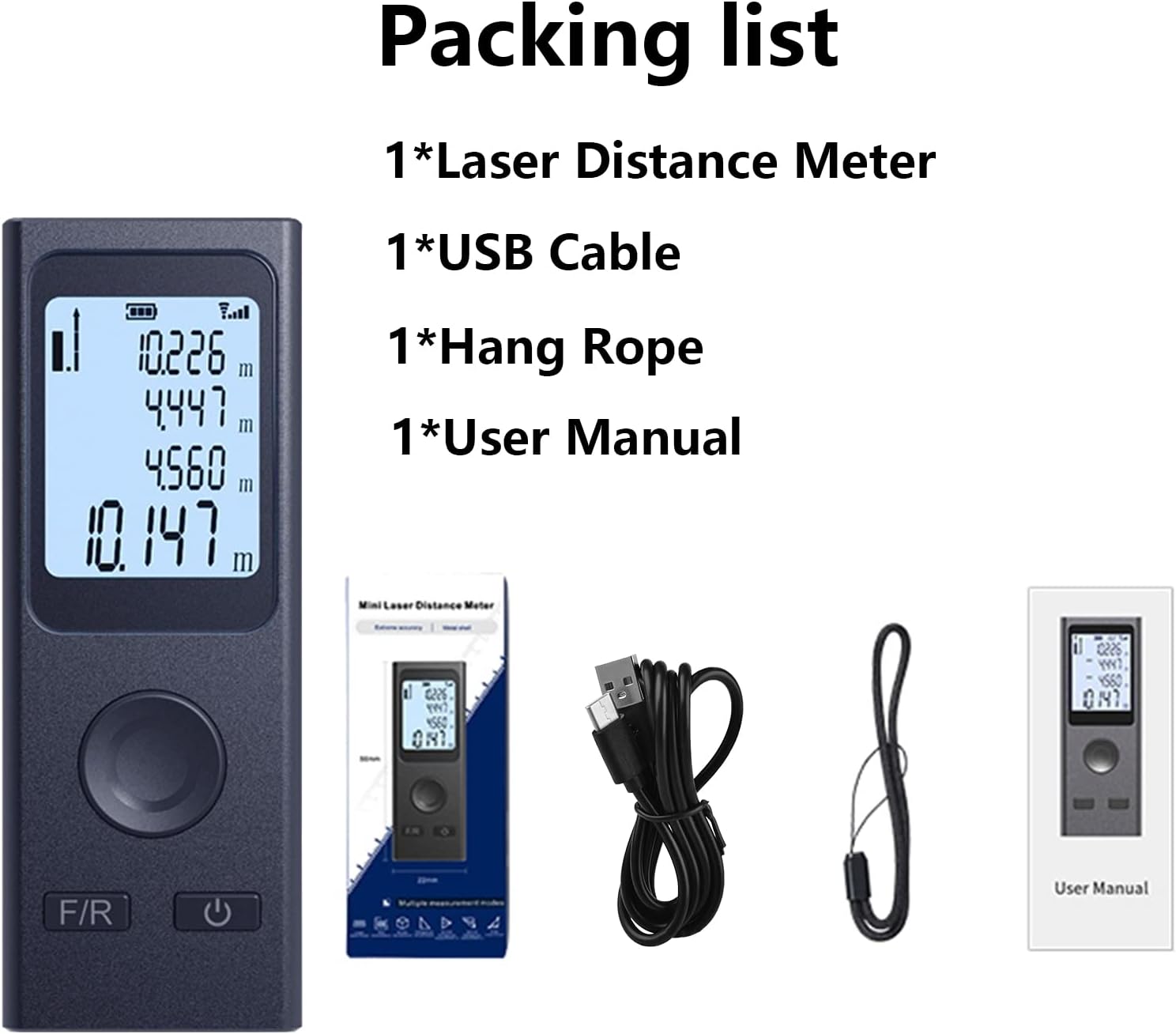 - 【Lange Messreichweite】 Der Mini-Laser-Entfernungsmesser hat eine Reichweite von bis zu 50 Metern und eine Messgenauigkeit von ± 2 mm. Extra 50 % grösserer Bildschirm für einfaches und klares Ablesen, Anzeige von 3 Datensätzen gleichzeitig.