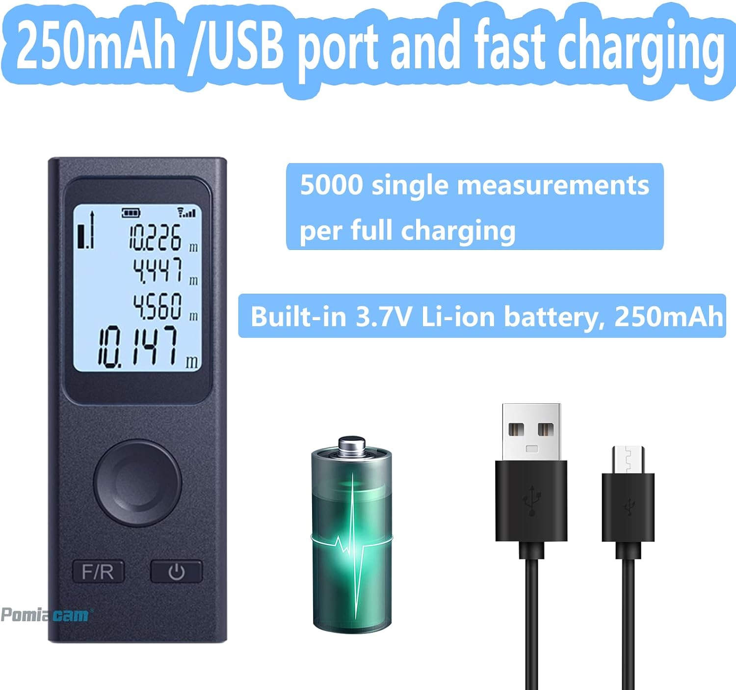 - 【Laser-Entfernungsmesser-Batterie】 Der Laser-Entfernungsmesser verfügt über eine wiederaufladbare Lithiumbatterie mit langer Batterielebensdauer. Eingebauter 3,7 V 250 mAh Lithium-Akku mit hoher Kapazität, der über mobile Stromversorgung,