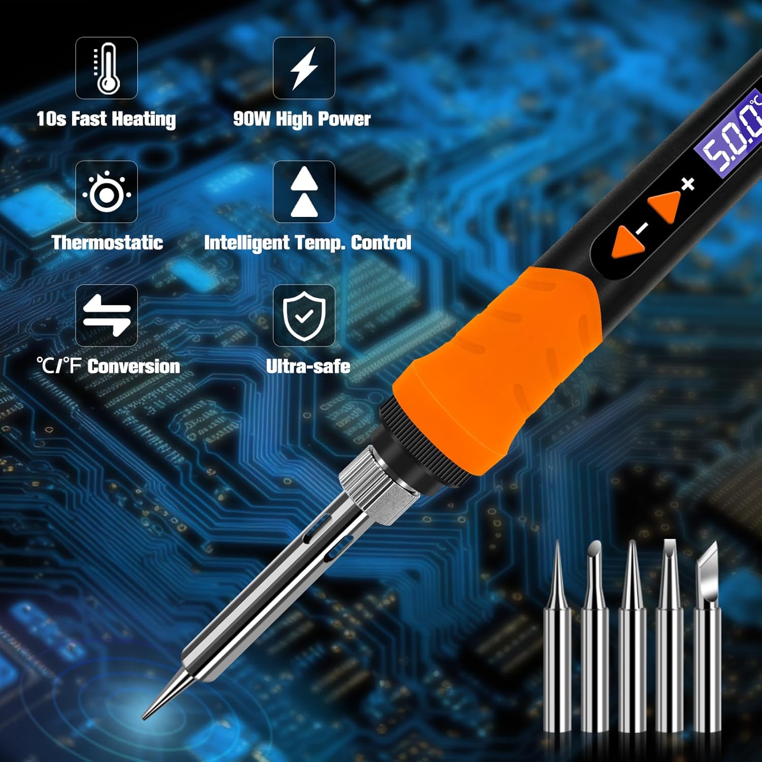 - 【10S Schnelles Erhitzen Lötkolben】Intelligentes Temperaturkontrollsystem, ermöglicht 200°-500℃ (392-932℉) breite Temperatureinstellung. Darüber hinaus kann es Temperaturschwankungen automatisch ausgleichen, um eine Thermostatfunktion zu