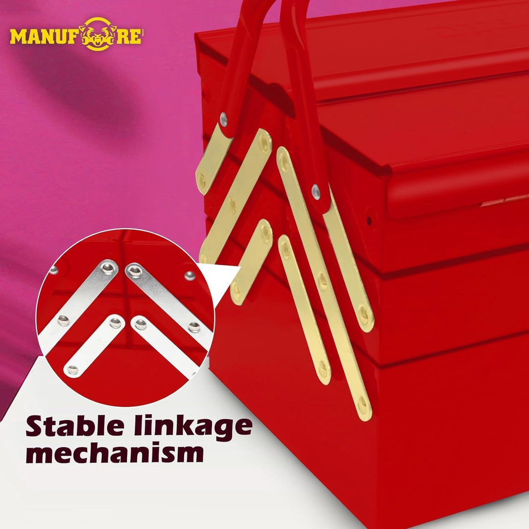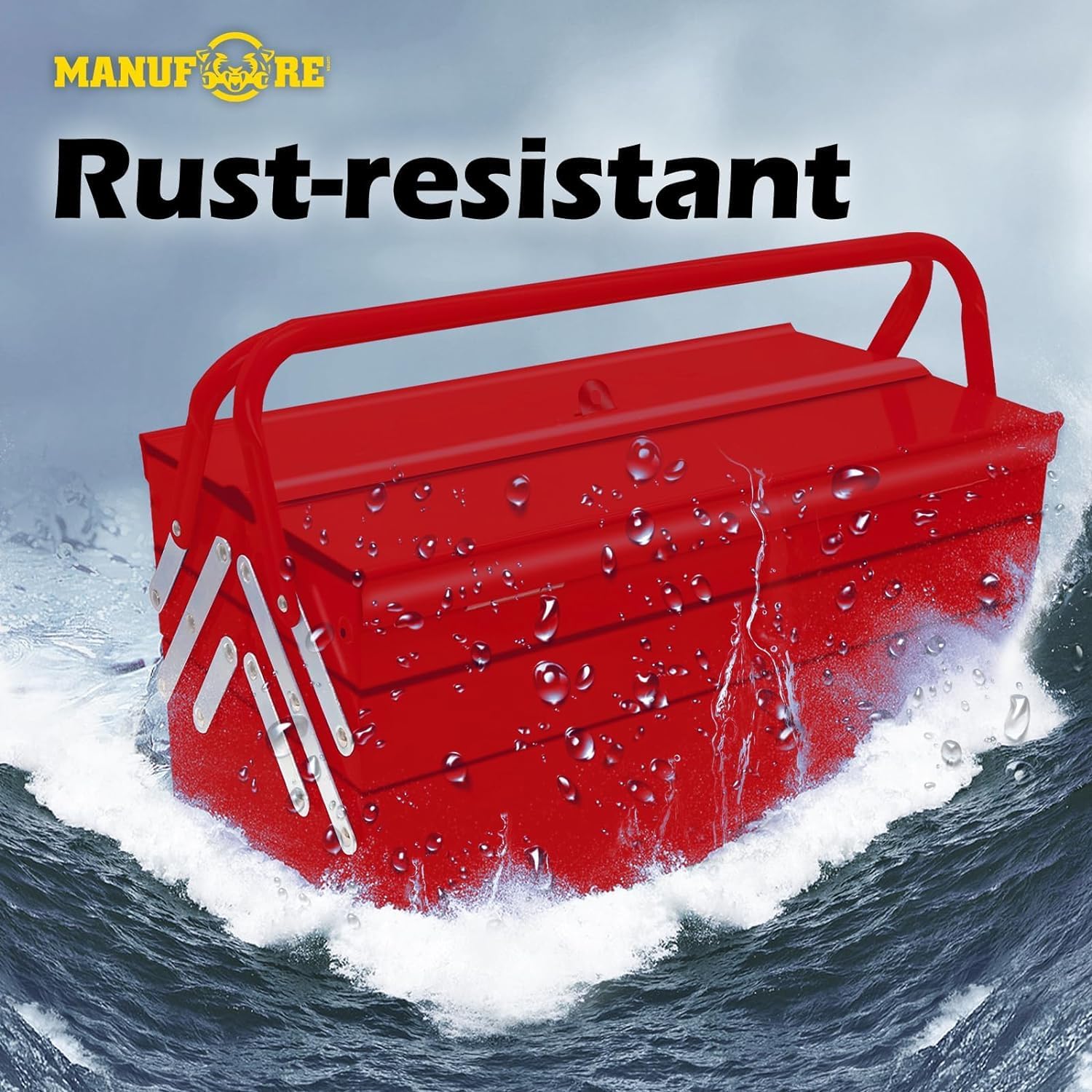 - 【Stabil】MANUFORE Metall werkzeugbox sind aus genieteten scharnieren und hochwertigen stahlplatten gefertigt. Die scharniere sind stark und robust und nicht leicht zu brechen, so dass sie Ihre werkzeuge aufbewahren und transportieren können, ohne