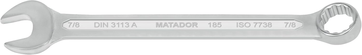 - Flache Köpfe für enge Platzverhältnisse, vollautomatisch geschliffen für präzise Toleranzen, Maulstellung 15°, mit abgewinkelter Ringseite und MATADOR SmartDrive-Profil: Bringt die Kraft auf die Flanken der Schraube - nicht auf die Ecken.