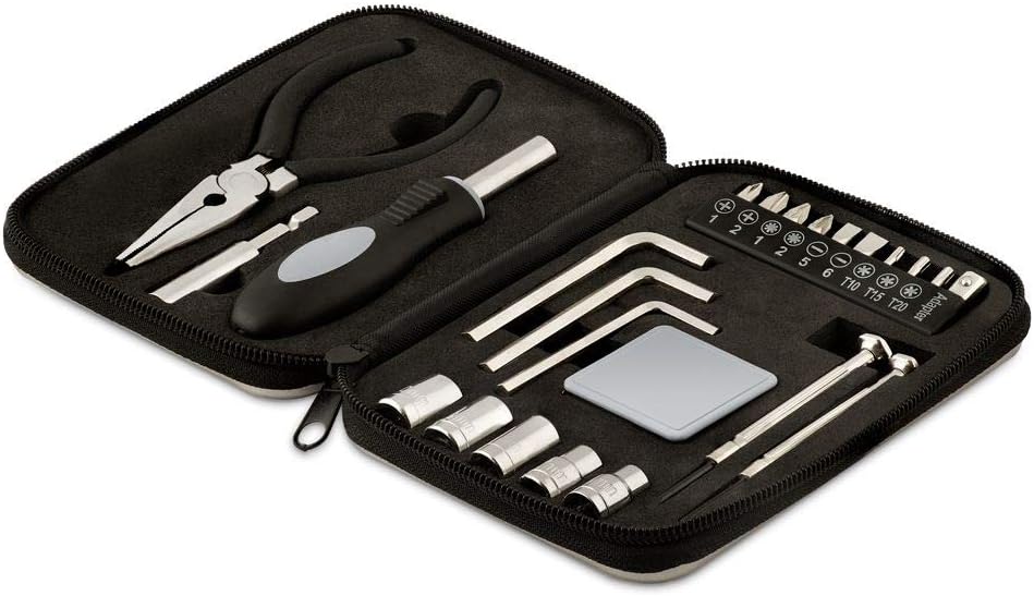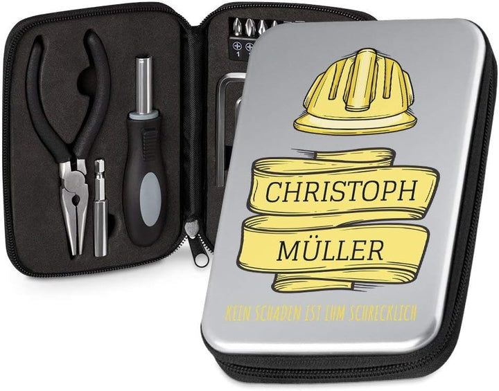 - STILVOLLES GESCHENK: ein Werkzeug-Set in einem Designer-Etui mit einem personalisierten Aufdruck und Reissverschluss. Das Set ist 16 cm x 11 cm gross, alle Elemente befinden sich in einem Aluminium-Etui mit einem originellen Motiv auf der Oberseite. Es