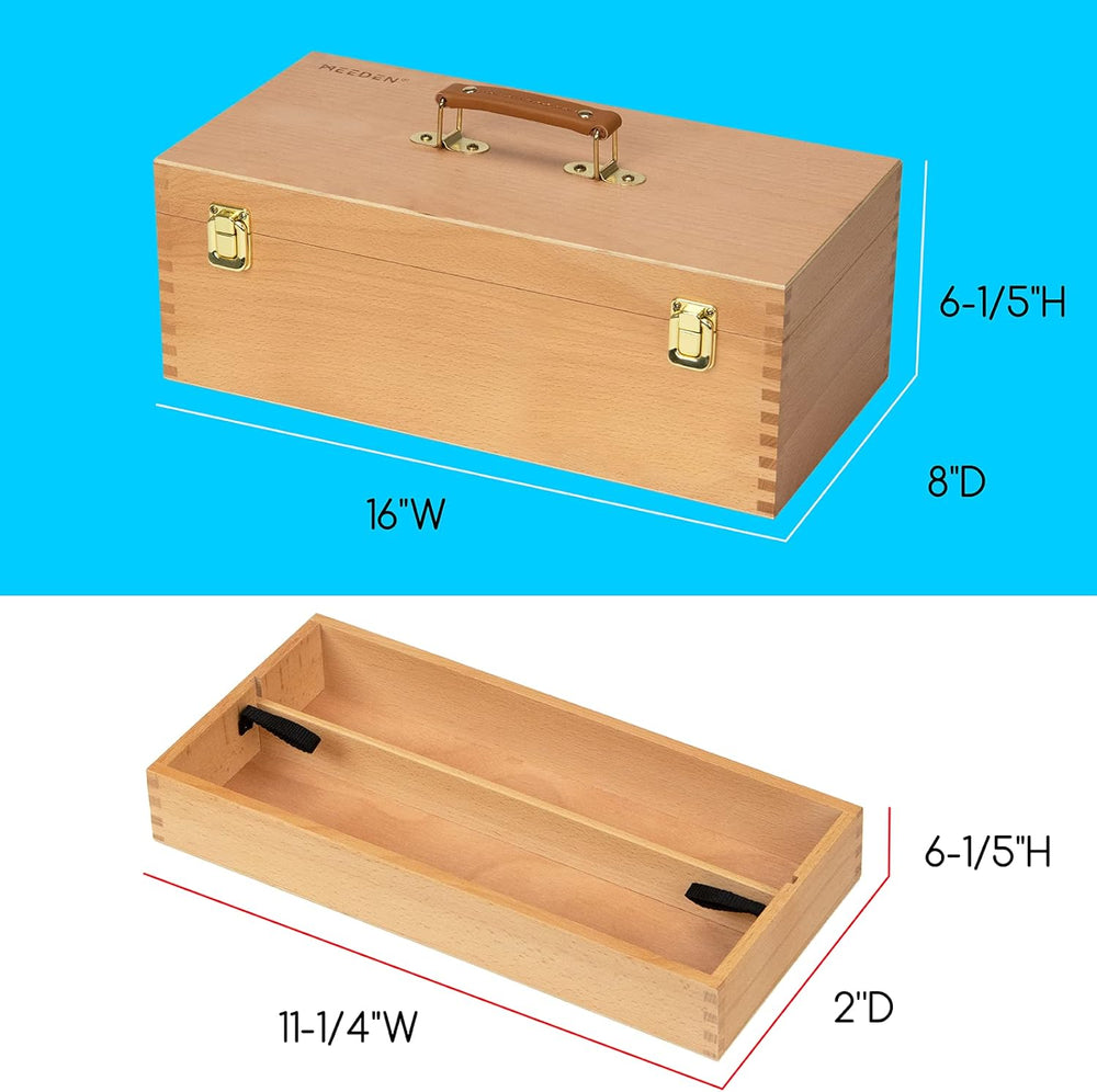 - Preiswerte Aufbewahrungsbox aus Holz – Kunstwerkzeugkasten aus massivem Buchenholz mit den Massen 40 cm breit x 20 cm tief x 16 cm hoch. Natürlich, leicht und robust. Installieren die doppelte goldene rostfreie Metallschnalle. Einfach zu verwenden.