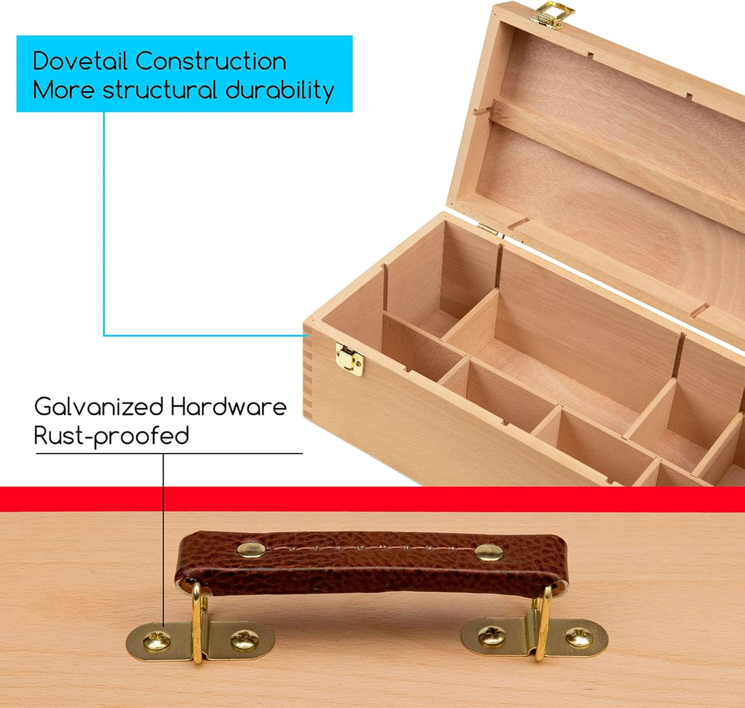 - Handgefertigt mit Glatter Oberfläche - Handgefertigter Kunstwerkzeugkasten aus Holz mit glatter Oberfläche nach der Ölbehandlung. Jede Ecke ist sehr gut geschliffen ohne Mängel. Ideal für Freilichtkünstler, Studenten, Bastler oder alle, die ihre