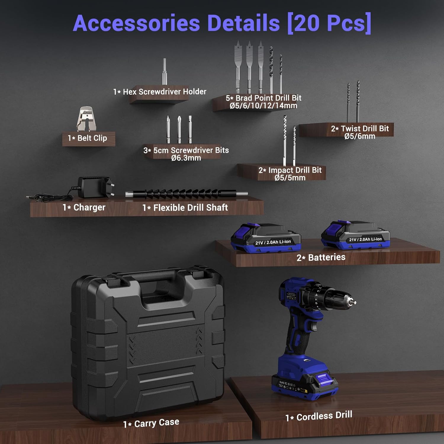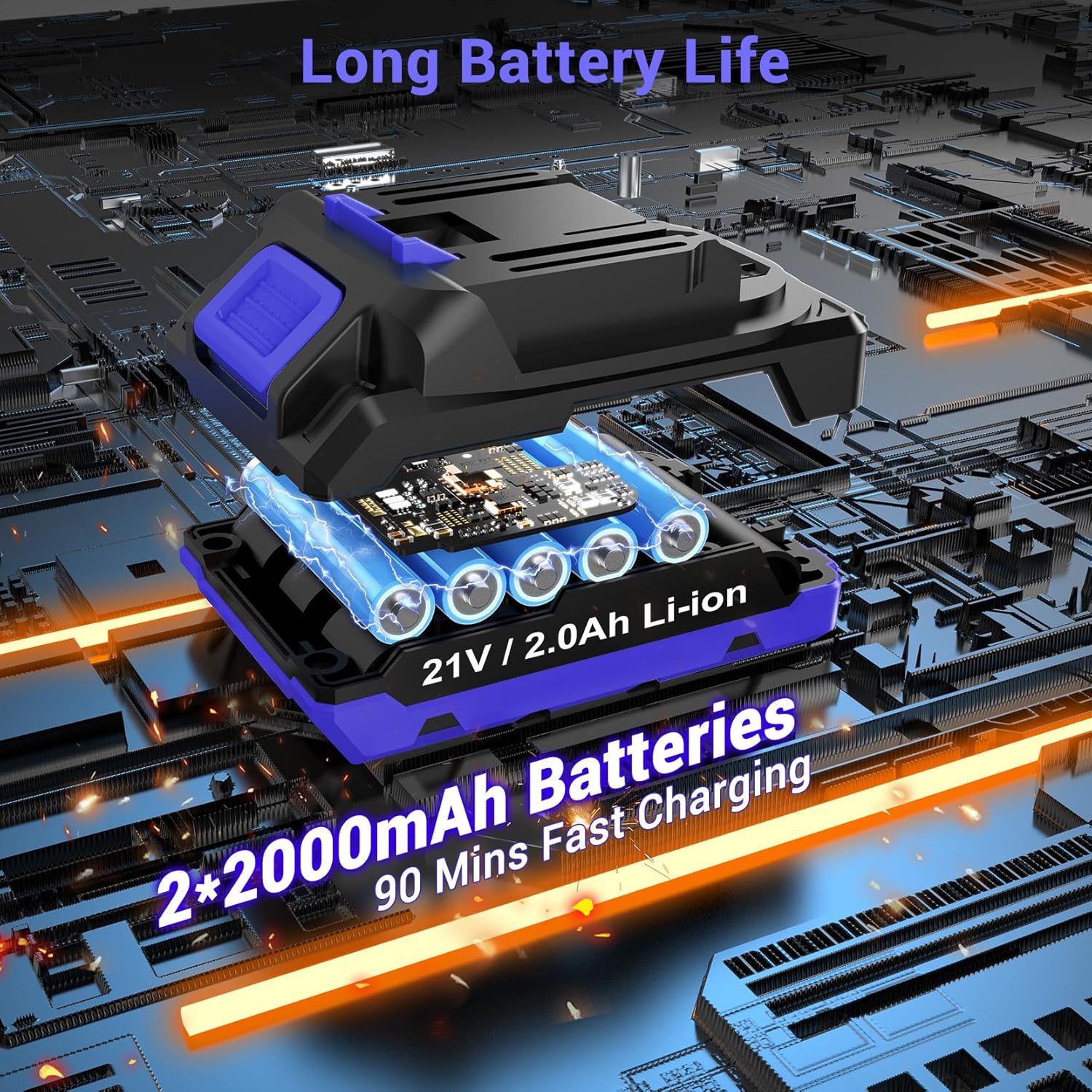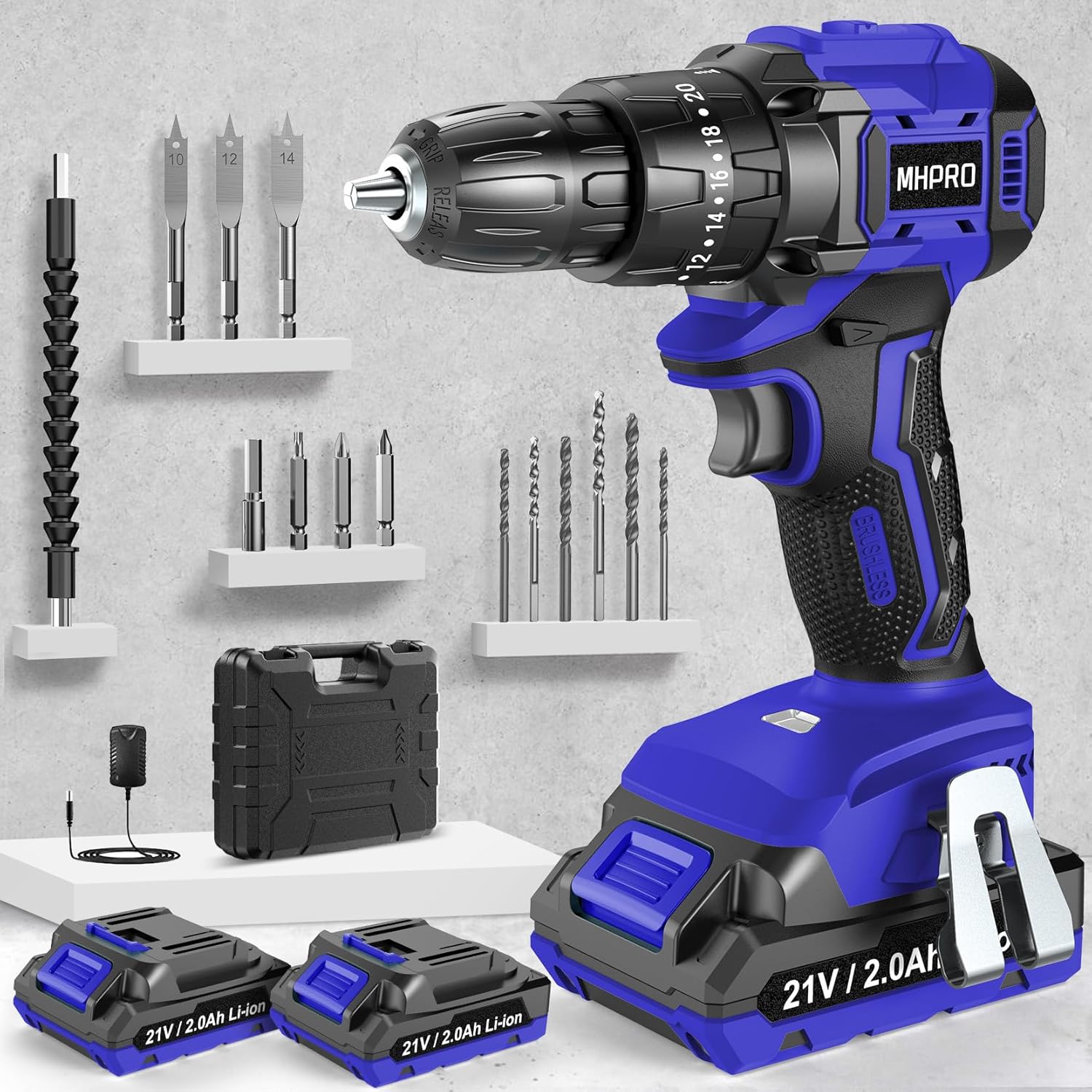 - 【2x 2000mAh Akkus & Batterieanzeige】 MHPRO Akkuschrauber Set Mit zwei hochkapazitiven 2000mAh Lithium-Ionen-Akkus , ist es sehr geeignet für Langzeitarbeit. Keine Sorgen mehr über unterbrochene Arbeiten. Sie können die Batterie jederzeit wechseln,