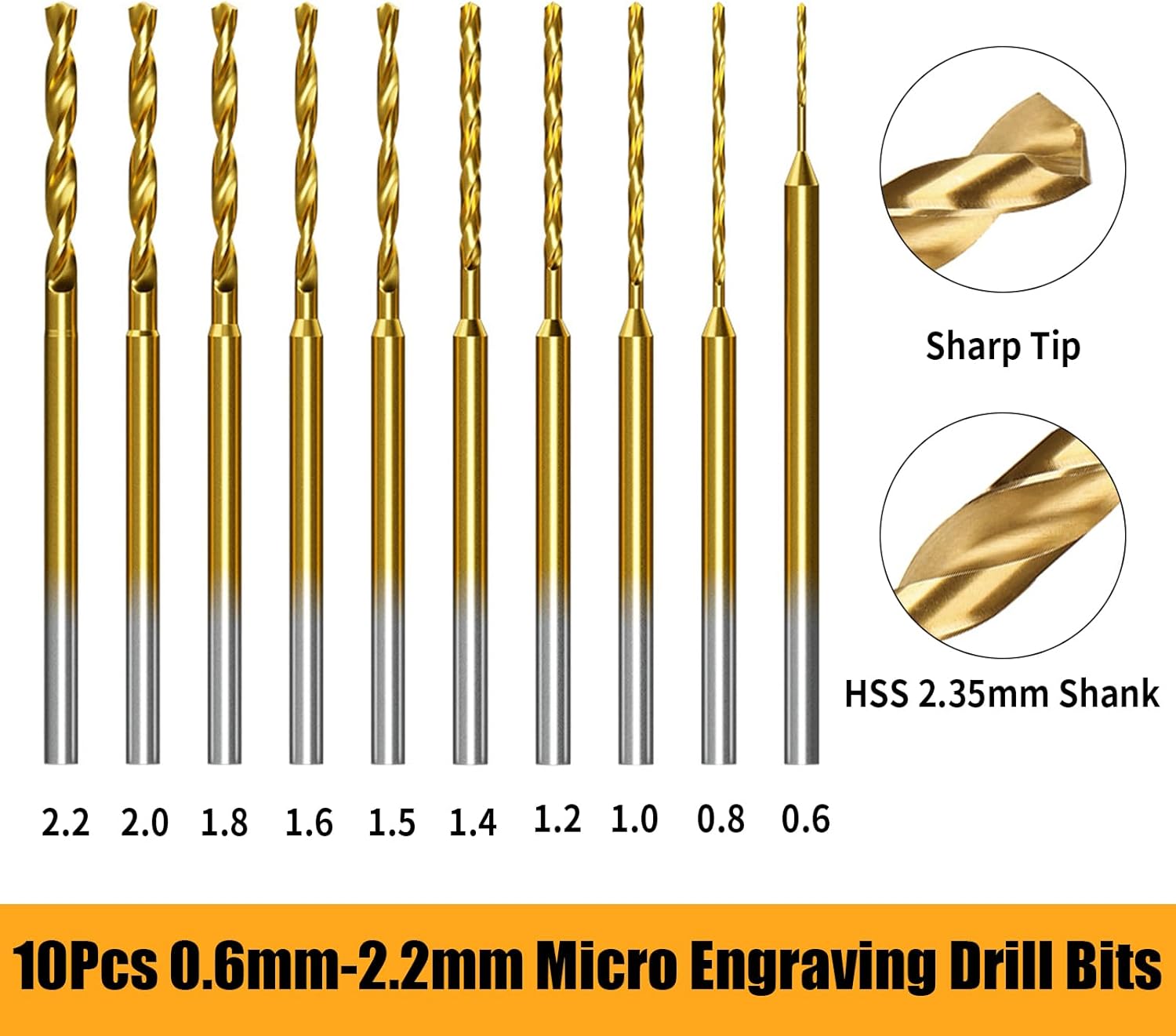 - Vielseitige Zubehörkompatibilität: Das Set enthält 10 Bohrer in verschiedenen Grössen (0.6, 0.8, 1.0, 1.2, 1.4, 1.5, 1.6,1.8, 2.0, 2.2 mm) aus hochwertigem HSS (Schnellarbeitsstahl), die besonders hart und langlebig sind. Mit diesem Handbohrer für