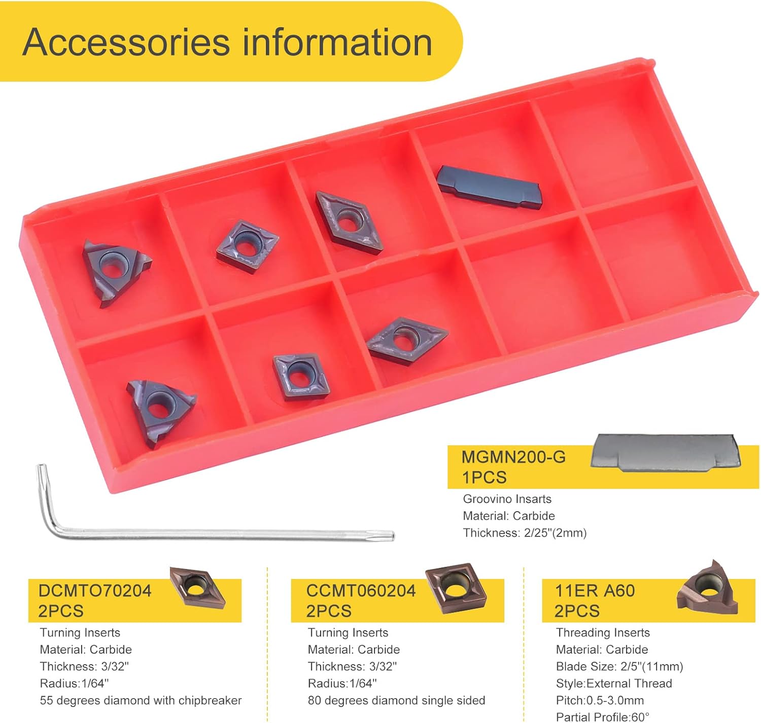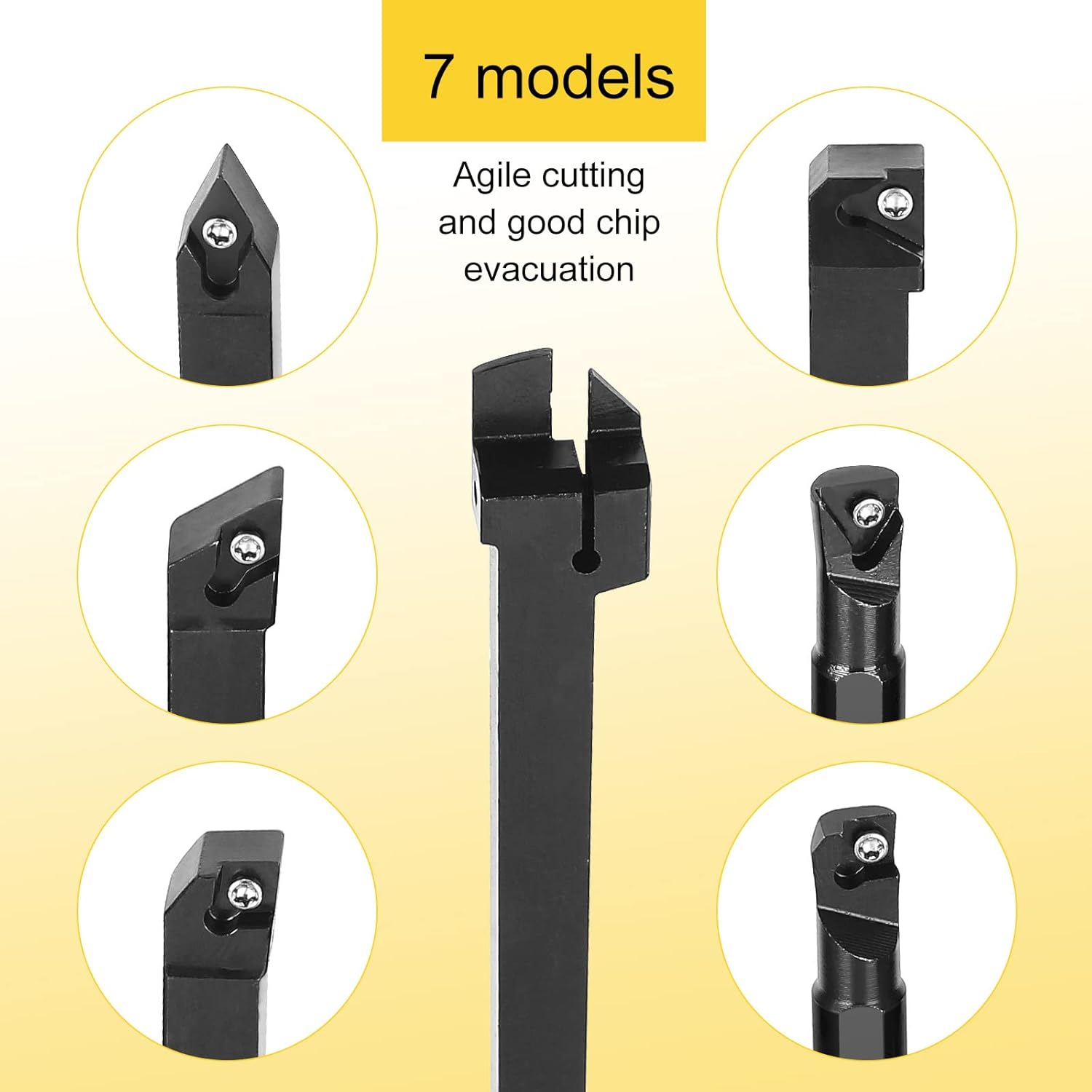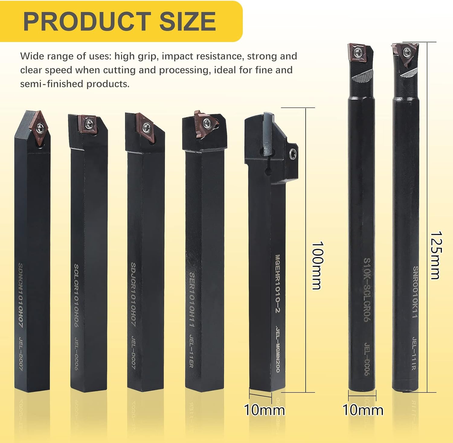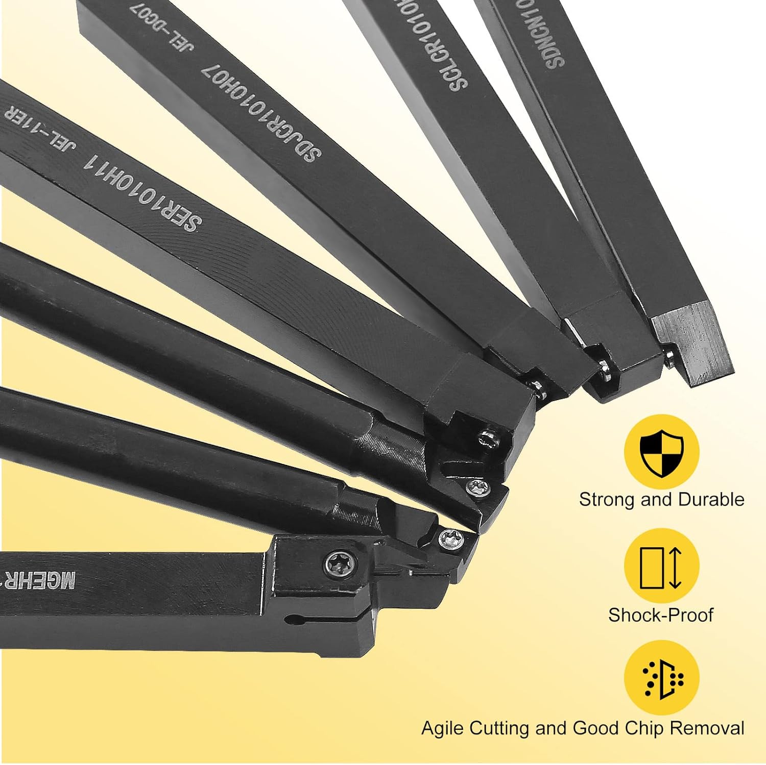 - 【Hohe Leistung】Der Hochleistungsdrehmaschinen-Werkzeugsatz bietet hohen Grip, Schlagfestigkeit und starke, klare Geschwindigkeitsvorteile, die grössere Kanten schneiden und die Verarbeitung durchführen können. Gute Zähigkeit und Härte, lange