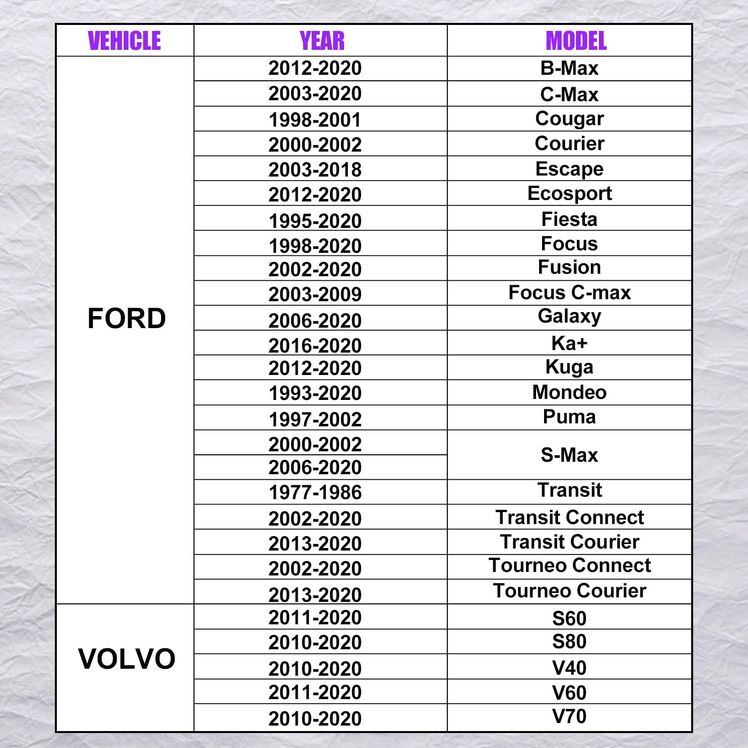 - PASSENDES FAHRZEUG: Kompatibel mit Ford Fiesta Focus Escape Volvo S-Max Motor. Funktioniert für 2011 EcoBoost, 1,6 l Duratec-16V Ti-VCT; 13–14 Ford Fusion 1,6 l EcoBoost; 13 - 18 Ford Fusion 1,5L EcoBoost; 14 - 16Duratec-Benzinmotor 1,25, 1,4, 1,6,