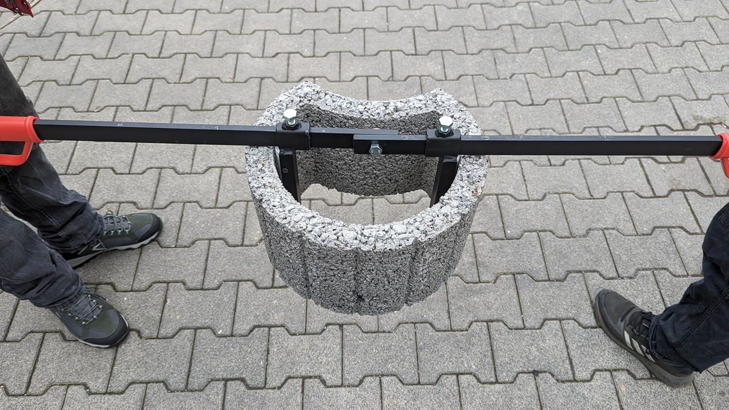 - Zange zum Versetzen bzw. Verlegen von Pflanzringen, Pflanzkübeln und sonstigen kübelartigen Gefässen. Die Zange ist zwischen ca. 28 cm und 60 cm stufenlos verstellbar. Die Greiftiefe liegt bei ca. 150 mm.