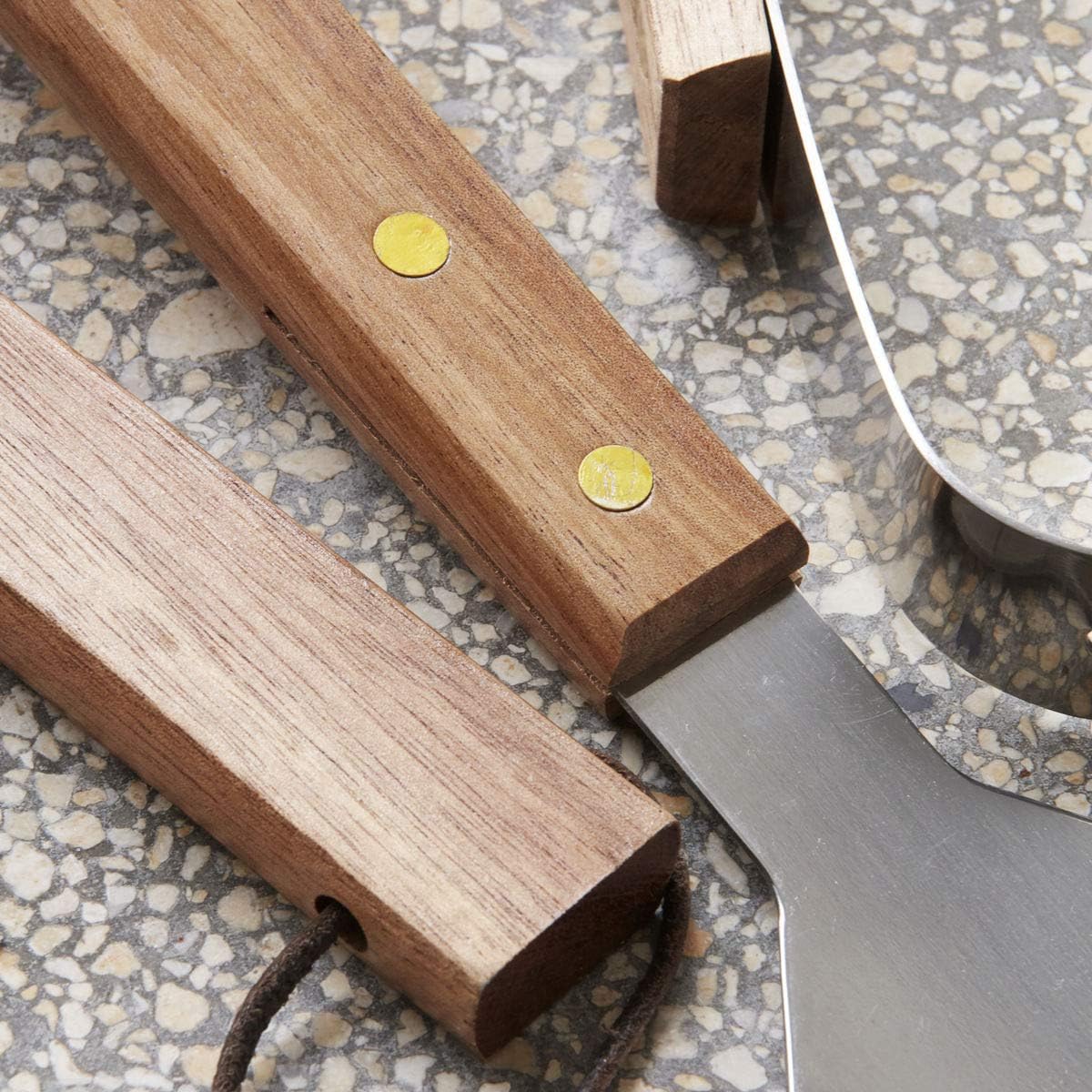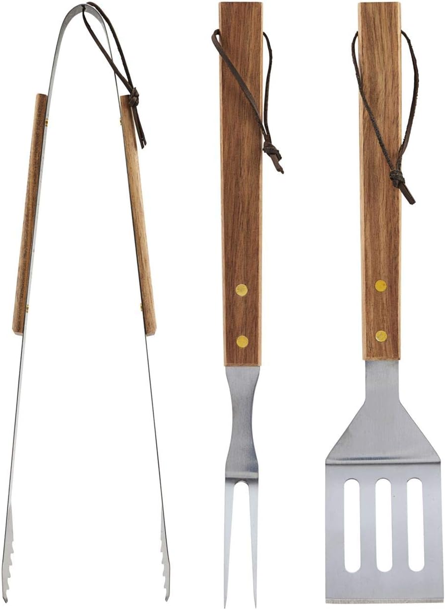 - Das BBQ-Set enthält eine Grillzange, ein Palettenmesser und eine Grillgabel