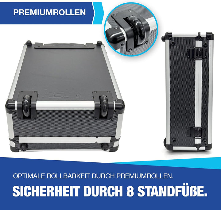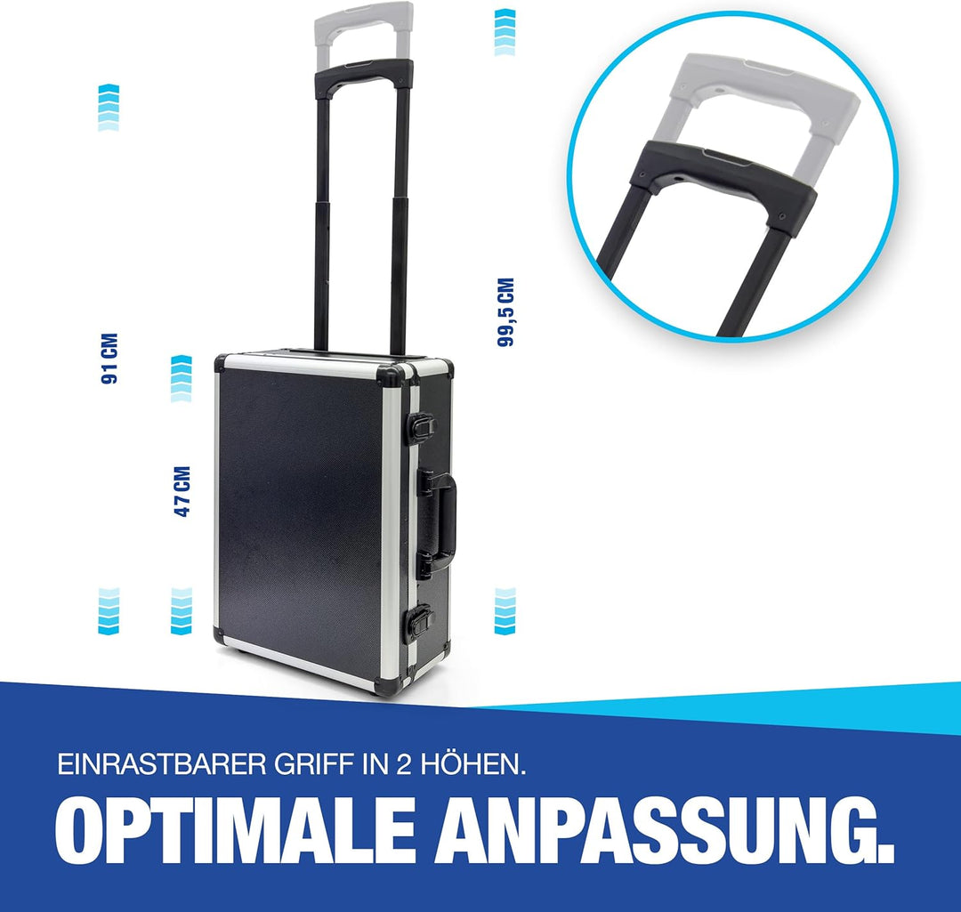 - Hochwertiger Werkzeugtrolley mit Premiumlaufrollen: Der NTG Werkzeugkoffer ist mit robusten Laufrollen ausgestattet und verfügt über einen ausziehbaren Teleskopgriff, der einen einfachen und komfortablen Transport ermöglicht. Ideal für die mobile