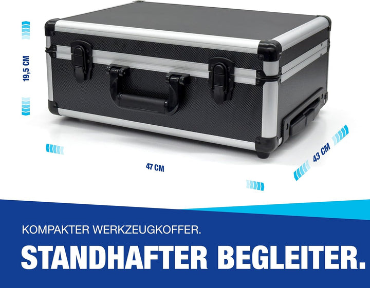 - Optimale Ordnung und Organisation: Dank des klappbaren Einsatzes und des integrierten Tragegriffs bleiben Ihre Werkzeuge immer übersichtlich und leicht zugänglich. Kein Suchen mehr – jedes Werkzeug hat seinen festen Platz im Koffer.