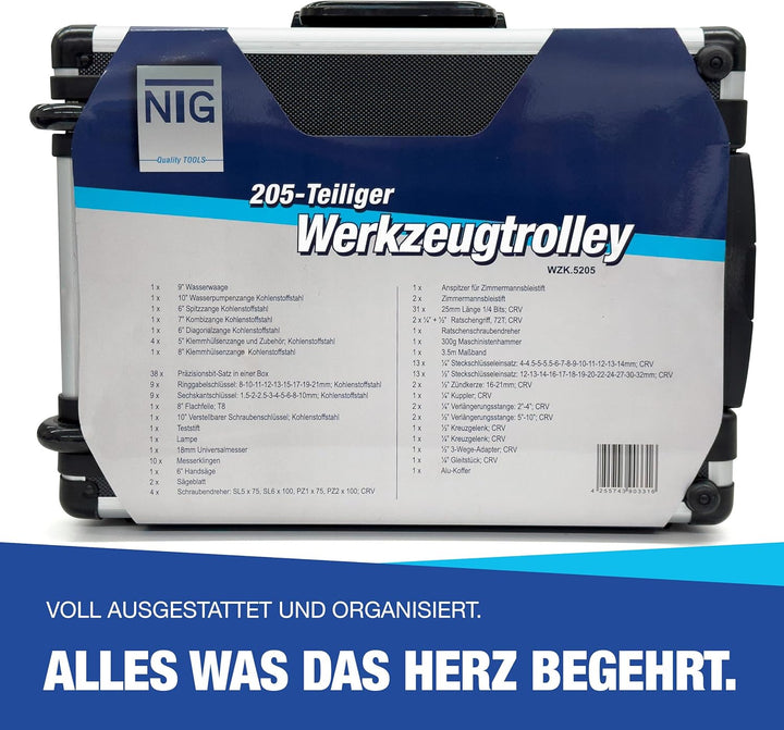 - Vielseitiges 205-teiliges Werkzeugset für jeden Einsatz: Der NTG Werkzeugkoffer bietet eine breite Auswahl an Handwerkzeugen, perfekt für Heimwerker, Profis und Hobbybastler. Egal ob Reparaturen, Montagearbeiten oder allgemeine Wartungsarbeiten – mit