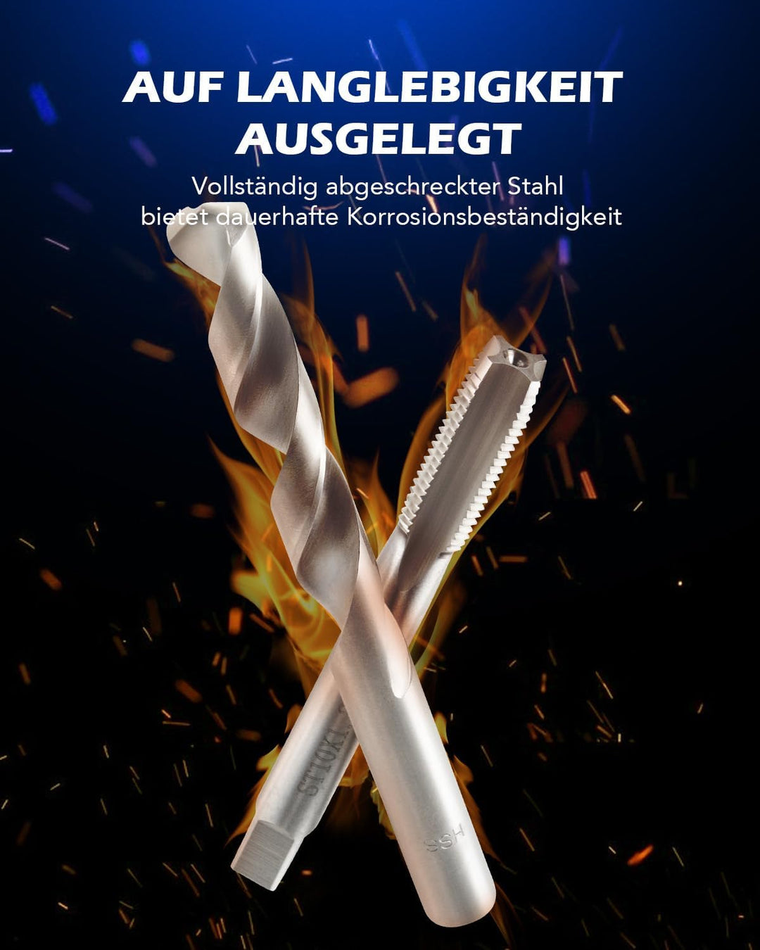 - -Langlebig: Die Bohrer und Gewindebohrer in diesem Gewindereparaturset sind aus hochwertigem Stahl gefertigt, der auf einen HRC-Wert von 50-60 wärmebehandelt ist, während jeder Gewindeeinsatz aus rostfreiem Stahl 304 hergestellt ist, um eine hohe