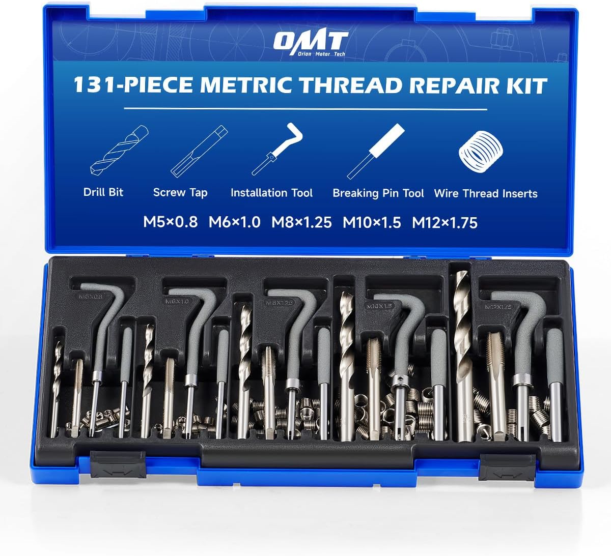 - -131 PCS Metrischer Gewinde-Reparatursatz: Das Helicoil-Gewindereparaturset von Orion Motor Tech enthält 110 Gewindeeinsätze, 10 Installations- und Abbruchwerkzeuge, 5 Gewindebohrer, 5 Bohrer und einen Sechskantschlüssel in den 5 am häufigsten