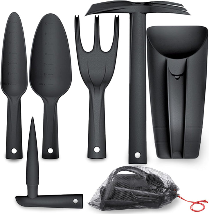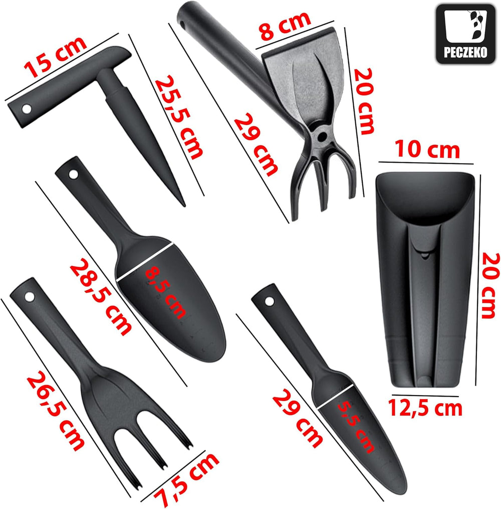 - Vielseitiges Gartenwerkzeug Set: Unser gartenwerkzeug set enthält alles,das 6-teilige Gartenwerkzeugset enthält eine praktische Tragetasche, einen Spatel (28,5 x 8,5 cm), einen Rechen (26,5 x 7,5 cm), einen Pflücker (15 x 20,5 cm) und einen Rechen (20
