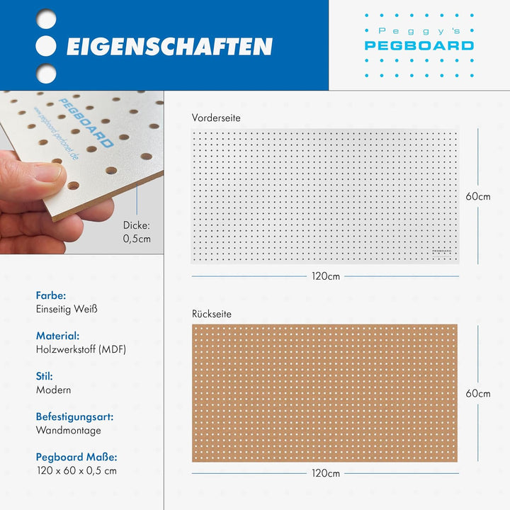 - Einseitig weiss lackiert, Rückseite roh. Beidseitig verwendbar. Somit lassen sich die Lochwände je nach belieben mit der weissen oder braunen Seite verwenden.