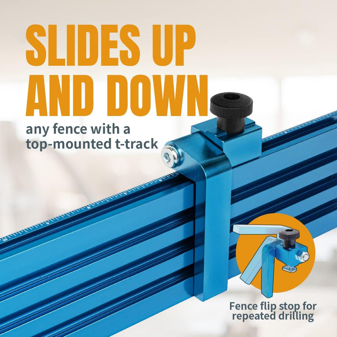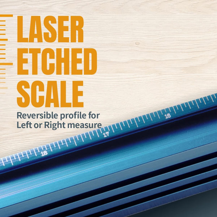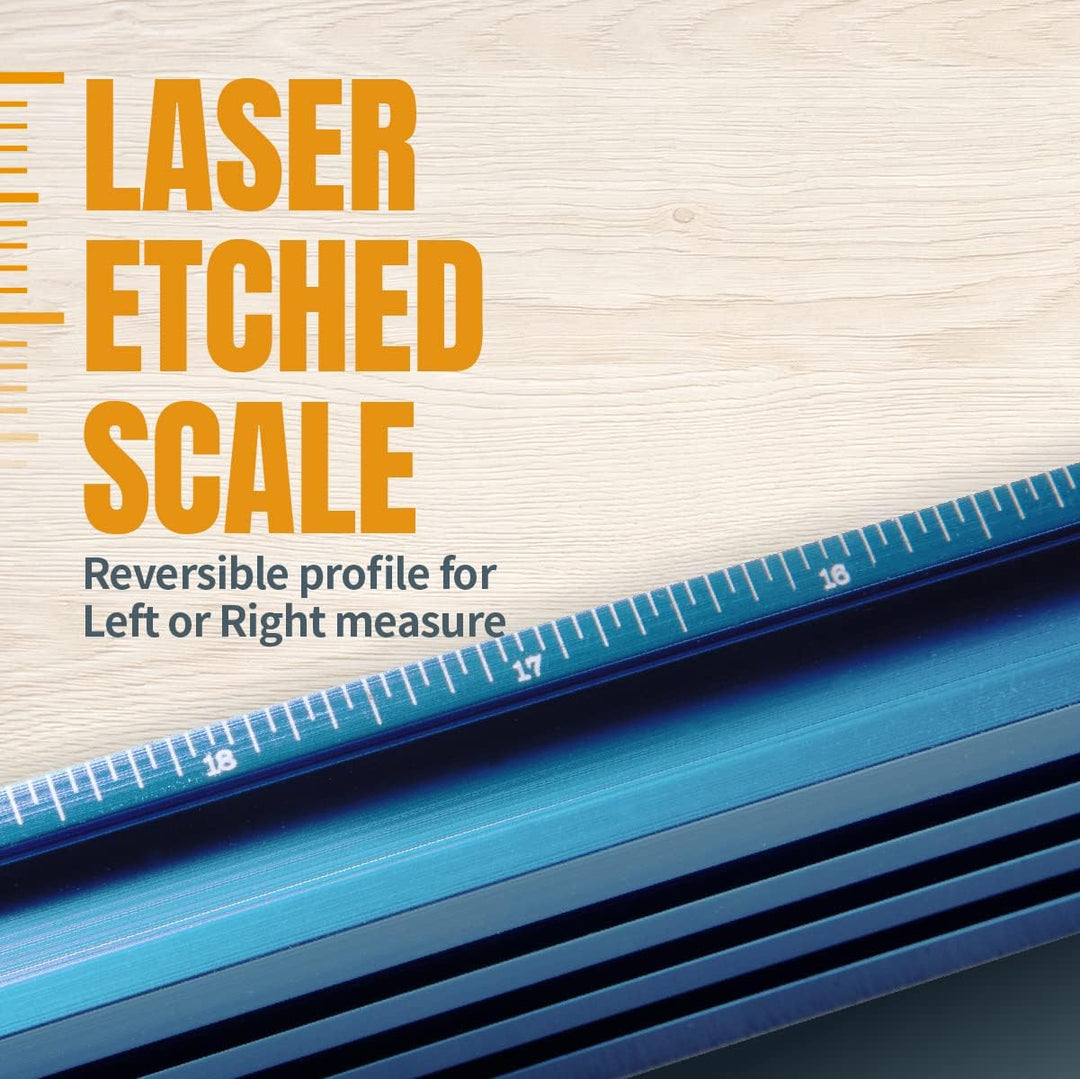 - Multi-T-Track-Zaun: lasergeätzte Skala, 61 cm lang mit aussergewöhnlicher Geradheit – wendbares Profil für links oder rechts, Abstand 1,9 cm Abstand (in der Mitte), 1,9 cm dick und 7,6 cm hoch. Dieses multifunktionale Werkzeug akzeptiert die
