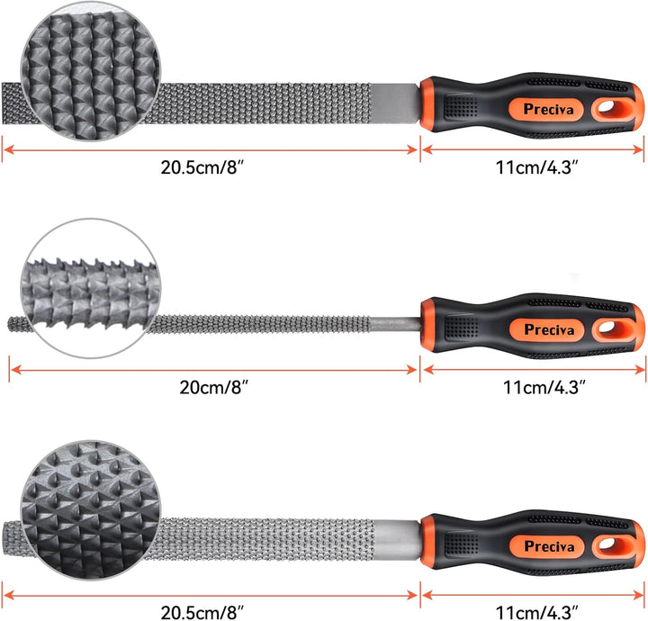 - Vielseitiges Set: Dieses Holzbearbeitungsfeilen-Set enthält drei verschiedene Arten von Feilen – flach, halbrund und rund, sodass Sie eine Vielzahl von Holzbearbeitungsaufgaben bewältigen können. Vom Formen von Kurven bis hin zu Glättung von