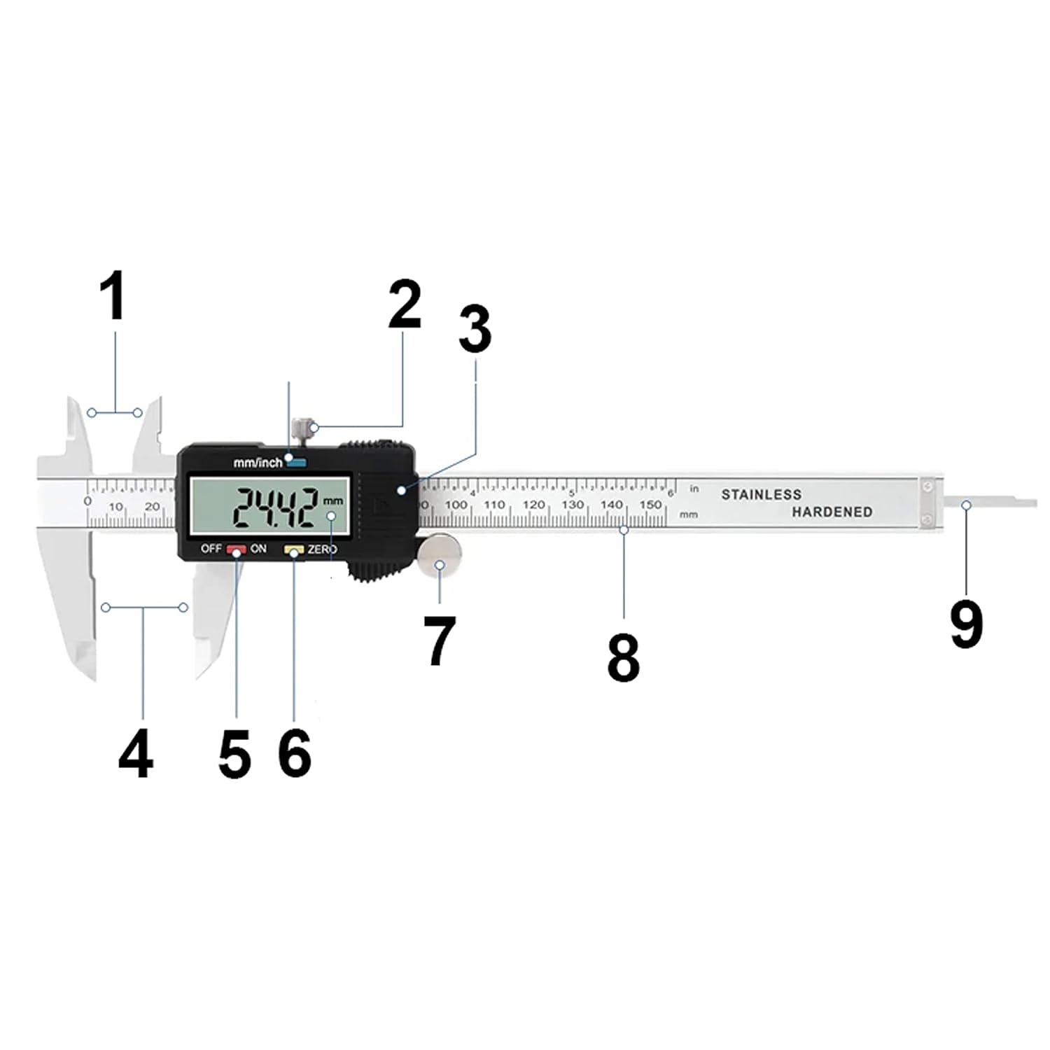 - 4 Messmethoden - Hochwertiger Messung ermöglicht Ihnen sehr genaue Messungen. Mit nur diesem einen Werkzeug können Sie im Handumdrehen messen – Aussenabstand, Innenabstand, Objektabstand und Tiefe. Denken Sie daran, dass dies ein Messschieber ist,