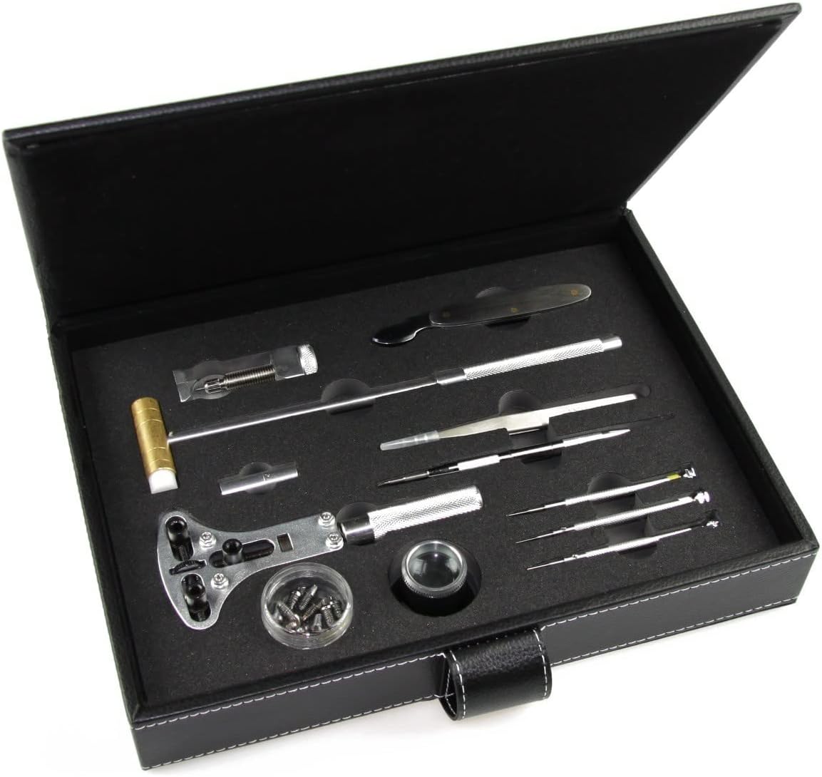 - Enthält die wichtigsten Uhrenwerkzeuge für den Heimwerker / Hobby-Uhrmacher für die häufigsten Uhrenreparaturen, wie zum Beispiel Batterien wechseln, Uhrenarmbänder entfernen und ersetzen, Metallarmbänder kürzen, Uhrendichtungen austauschen und