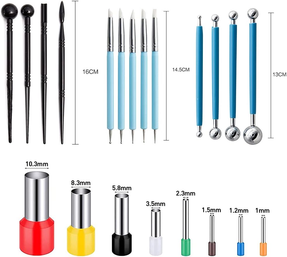 - Doppelseitige Werkzeuge: Das ergonomisch gestaltete Set aus Stahl beinhaltet doppelseitige Kugelwerkzeuge, Ausreibebänder und Ton-Modellierwerkzeuge, Nudelholz, Modellierstäbe und mehr für jede Art von Projekt.