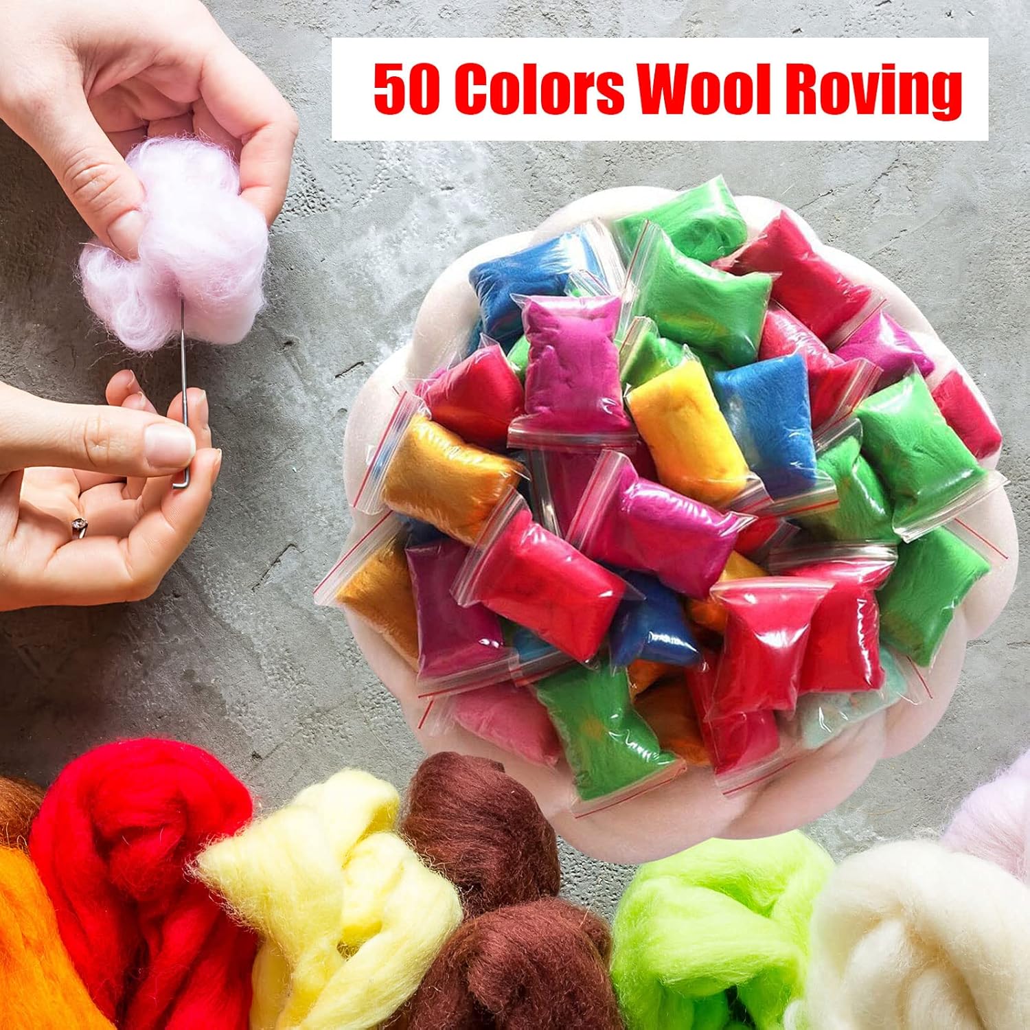 - Filzwolle in 50 Verschiedenen Farben: Verpackt in kleinen beuteln, jeder beutel wiegt 3 gramm,legen sie eine farbe in einen kleinen beutel,um zu verhindern,dass sich filzwolle vermischt. verschiedene farben ermöglichen es Ihnen,verschiedene nadelfilzen