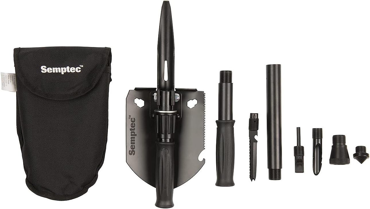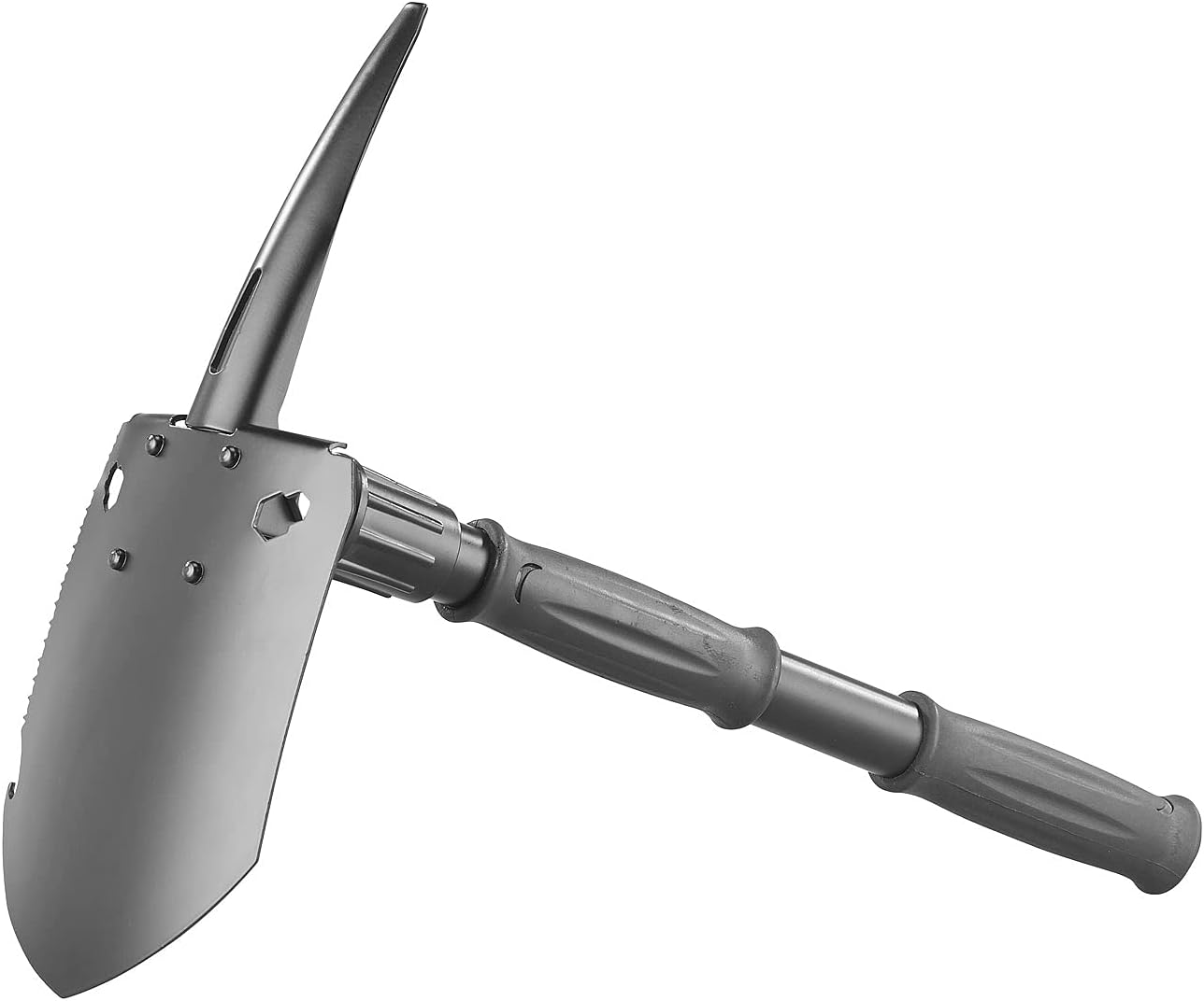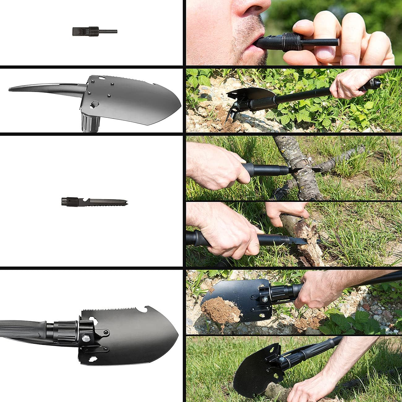 - 11in1-Multi-Werkzeug: Hacke, Spitzhacke, Spaten, Messer, Notfallpfeife, Notfallhammer, Säge, Eispickel, Schraubenschlüssel, Magnesium-Zündstein und Flaschenöffner • Praktische Aufbewahrungstasche aus Nylon