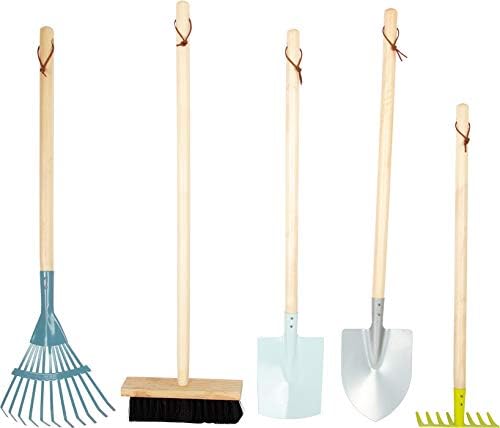 - Bestehend aus Spaten, Schaufel, Rechen, Harke, Besen, Eimer und zwei kleinen Gartengeräten