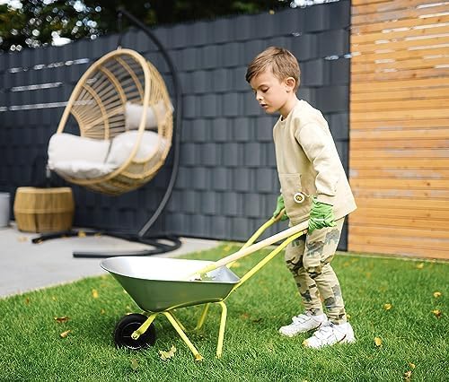 - Die Schubkarre, der Rechen und der Spaten mit Rundspitze kommen in einer für Kinder angemessenen Grösse und sind somit für Kinder leicht zu händeln