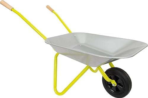 - Die Schubkarre ist mit Holzgriffen ausgestattet und bietet mit ca. 10 Liter ein extra grosses Muldenvolumen