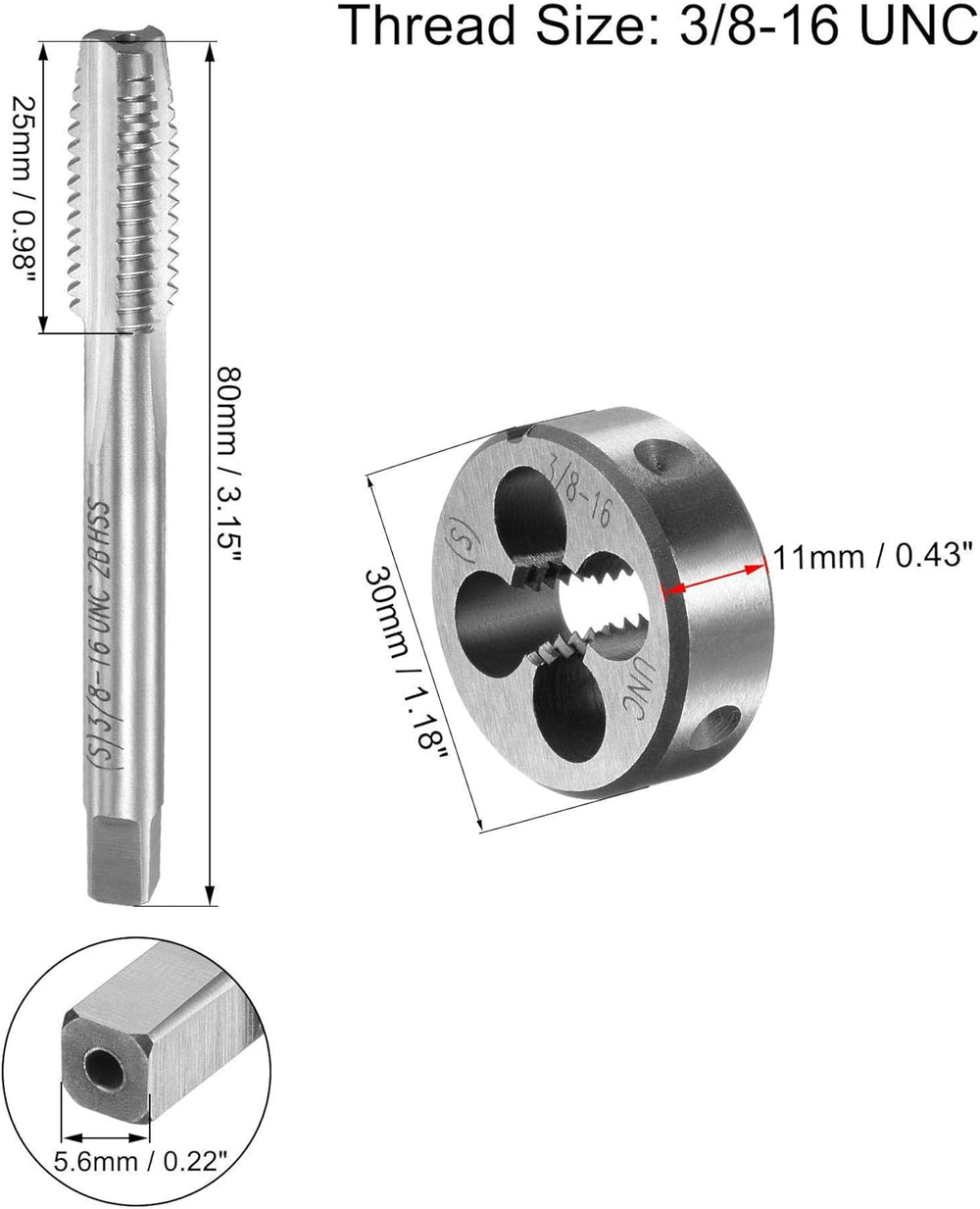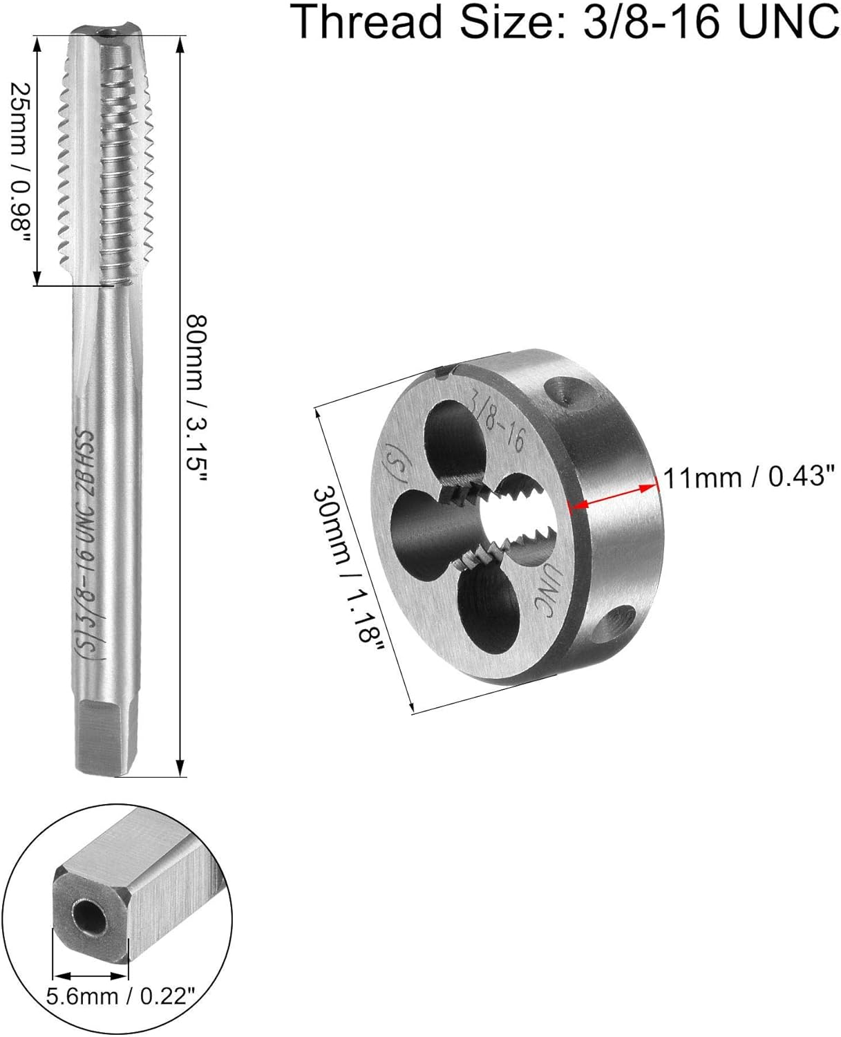 - Gewindeschneidbohrer: 3/8-16 UNC Gewindebohrer und Rundwerkzeug. 30mm Matrizenschaft für 20mm-30mm / M9-M11 Kapazität mit einstellbaren Schrauben. Geeignet zur Herstellung oder Reparatur von Aussen- und Innengewinden. Gut für allgemeine Anwendungen.