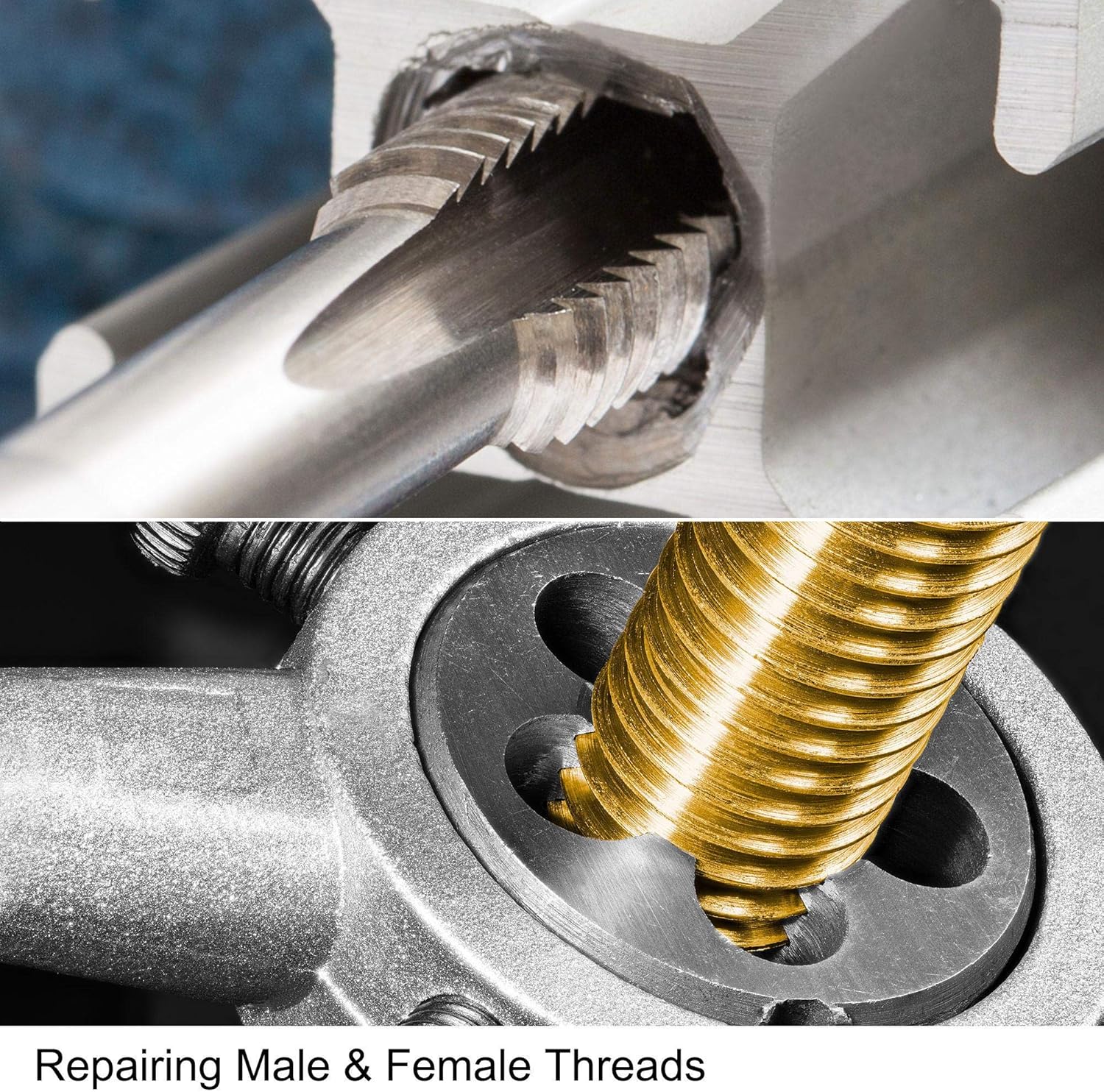 - Gewindeschneidbohrer: 5/16-18 UNC Gewindebohrer und Rundwerkzeug. 25mm Matrizenschaft für 16mm-25mm / M7-M8 Kapazität mit einstellbaren Schrauben. Geeignet zur Herstellung oder Reparatur von Aussen- und Innengewinden. Gut für allgemeine Anwendungen.