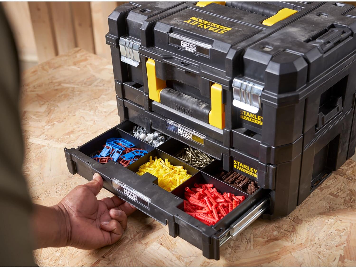 - Teil des modularen Stanley PRO-STACK-Aufbewahrungssystems: Erstellen Sie sich eine vielseitige Aufbewahrungslösung, die mit mehreren Modulen und Transportoptionen auf Ihr Gewerk zugeschnitten ist
