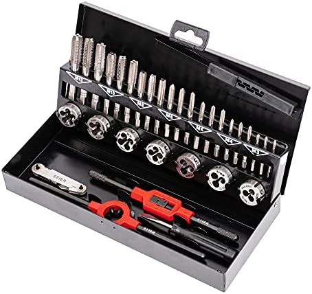 - GUT GESCHÜTZT: Das Gewindeschneid-Sortiment kommt in einer stabilen, industriellen Metallkassette mit eigener Halterung für die einzelnen Werkzeuge. So kann das Sortiment sicher transportiert werden.