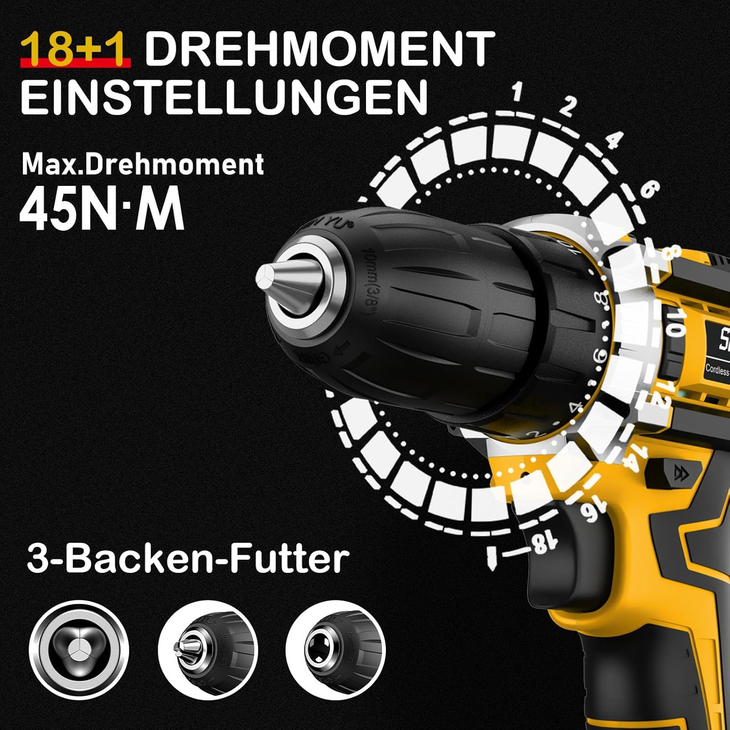 - PräZisionelles Drehmoment & Kraftvoll: Vertrauen Sie mir, diese akkuschrauber set kann alle Ihre Bedürfnisse erfüllen, wenn Sie Hausreparaturen, Heimwerkerarbeiten und Gartenrenovierungen durchführen.Die 21V Akku Bohrmaschine hat 18+1