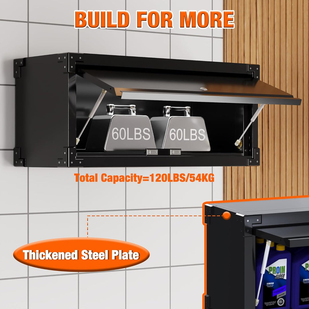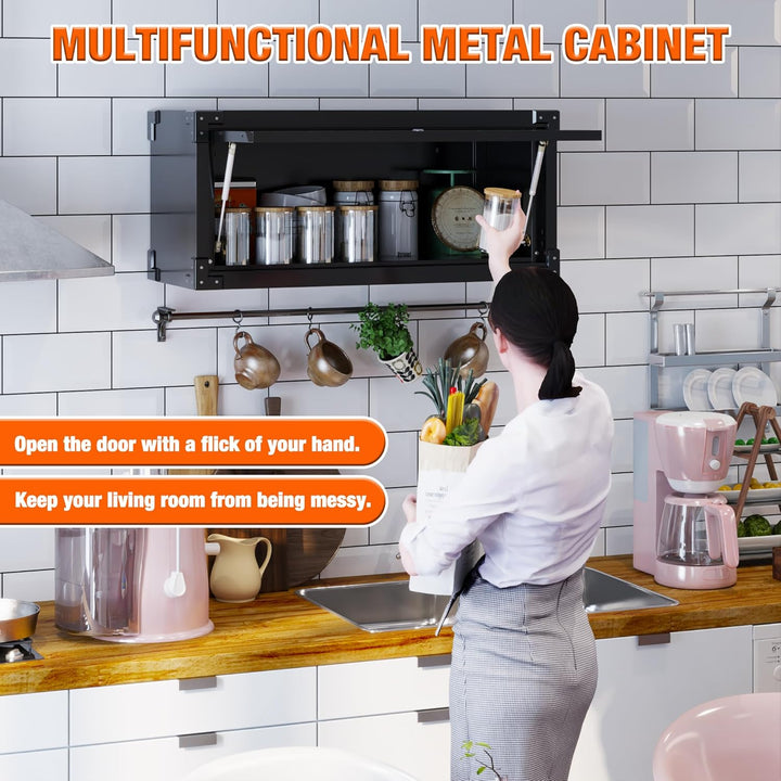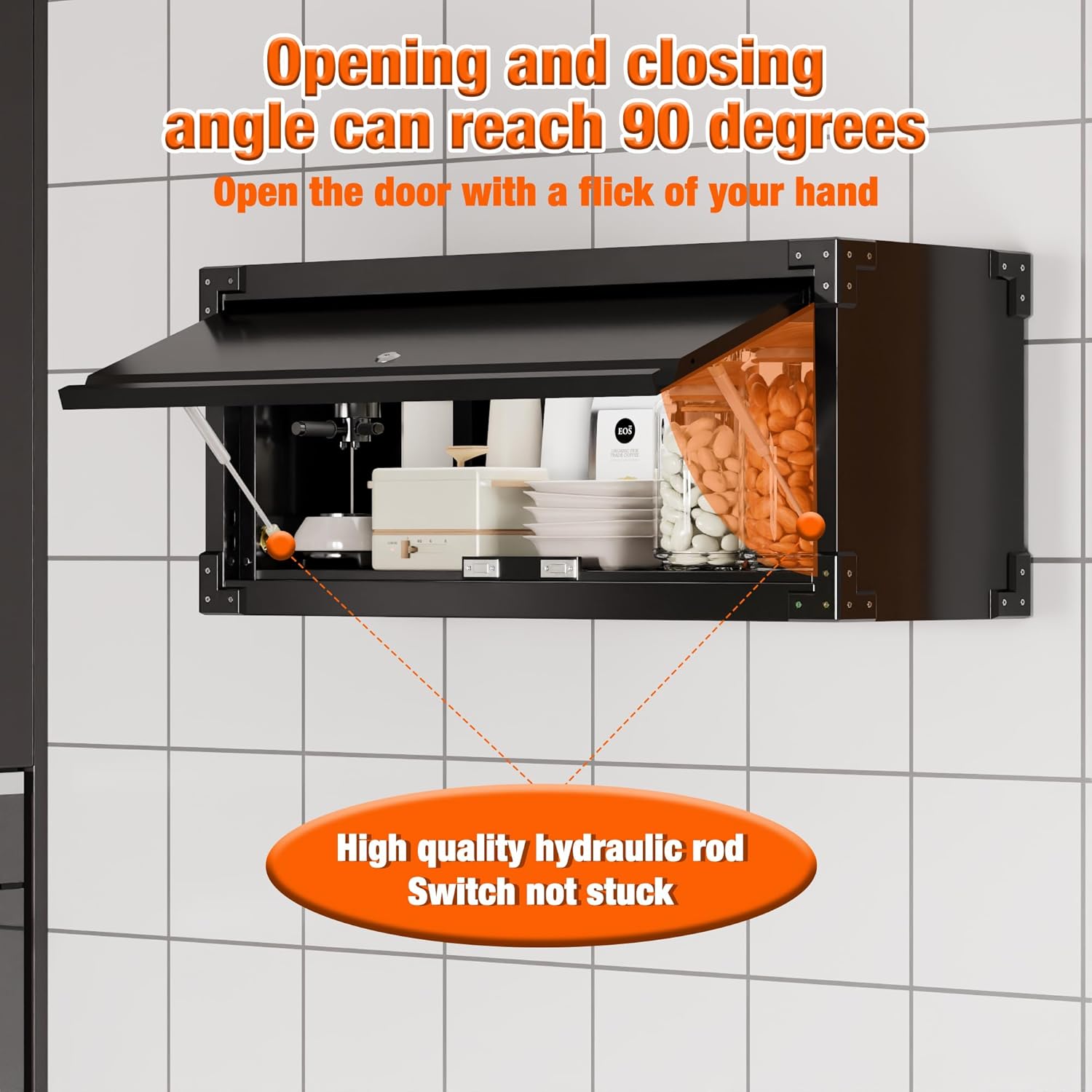 - 【Einzigartiges Design】Metallschrank zum Aufhängen hat das Design einer nach oben drehenden Tür. Der Winkel kann 90 Grad erreichen, was bequem zu öffnen und zu schliessen ist. Mittlerweile kann es mehr Platz sparen.