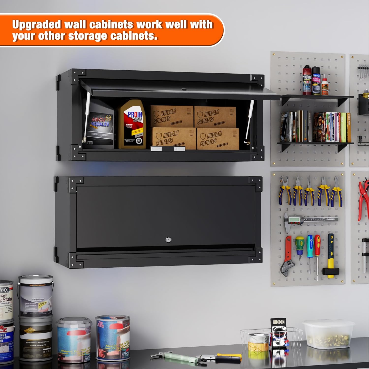 - 【Hochwertiges Material】Der Metall-Garagen-Wandschrank besteht aus kaltgewalzten Stahlplatten, die die Struktur stärken und die Metallschränke stärker und langlebiger machen. Der Wandschrank verfügt über eine langlebige elektrostatische