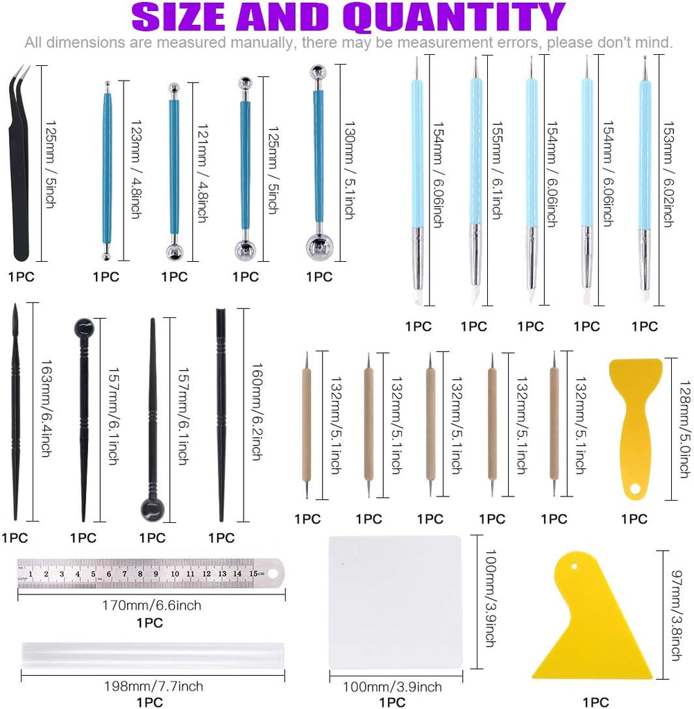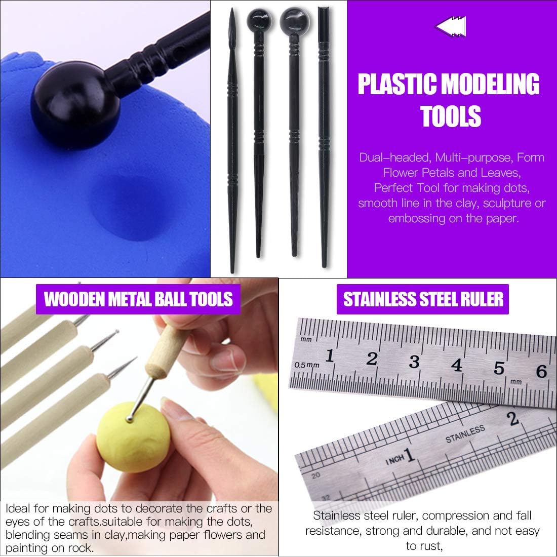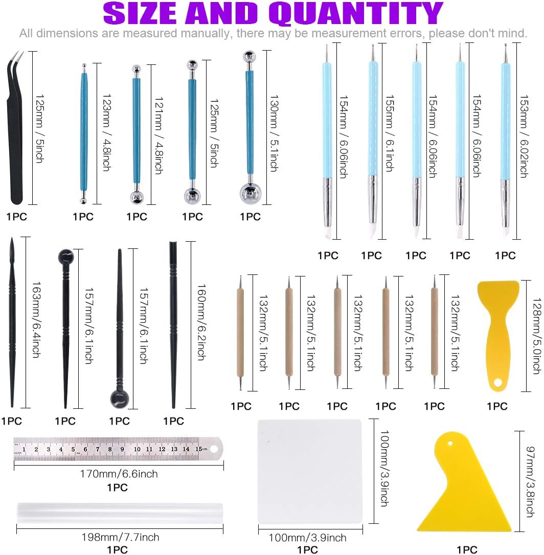 - Lieferumfang: 24-teiliges Modellierwerkzeug-Set, darunter 5 Holz-Punktierwerkzeuge, 5 doppelseitige Design-Töpferwerkzeuge, 4 Kunststoff-Kugel-Stab-Stylus-Modellierwerkzeuge, 4 Kugel-Stifus-Modellierwerkzeuge, 1 Acryl-Backbrett, 1 Tonrolle, 2