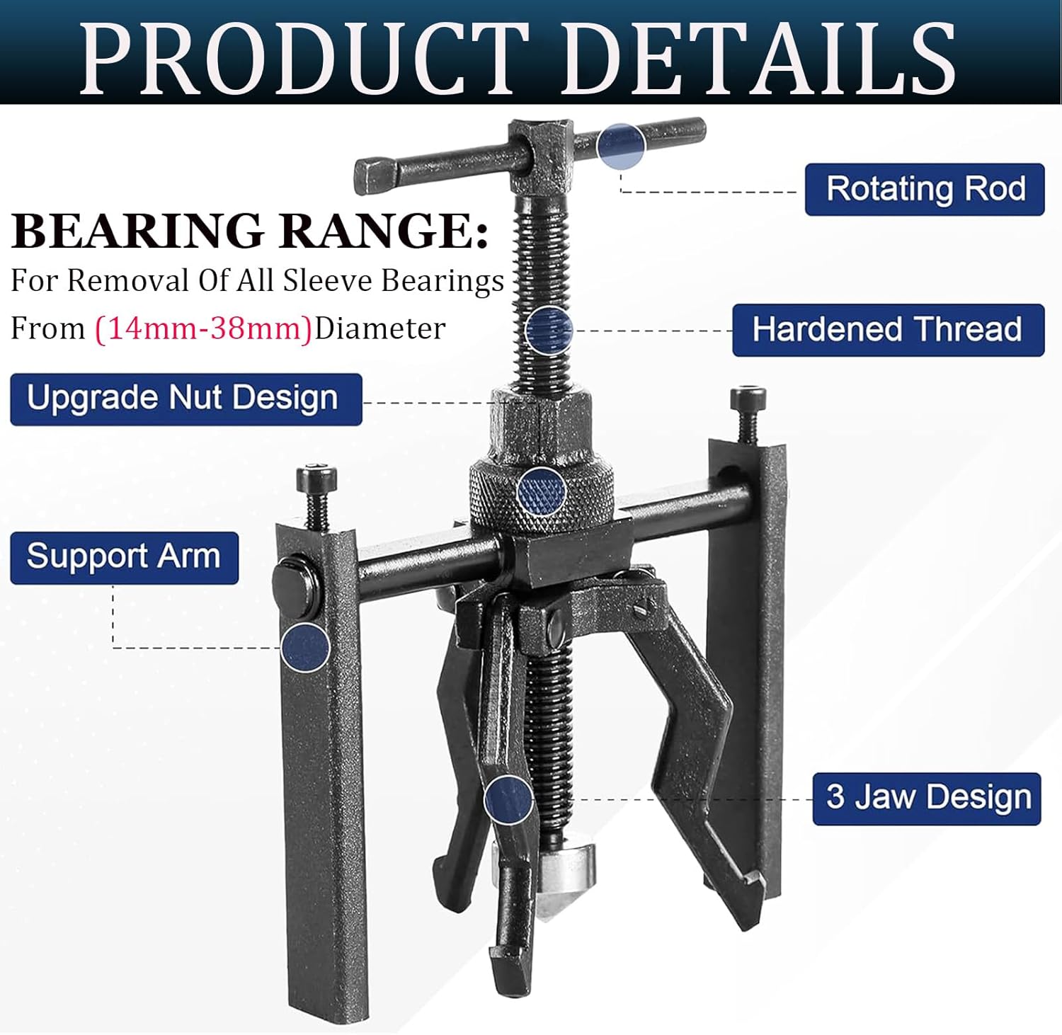 - đ©ăWEITHIN VERWENDETă- Unser Dreibacken-Innenlagerabzieher ist weit verbreitet fĂŒr die Demontage von ZahnrĂ€dern, Lagern, Buchsen, usw., einschliesslich MotorradrĂ€der, FahrradrĂ€der, Pumpenlager, Generatorlager, mechanische Lager,