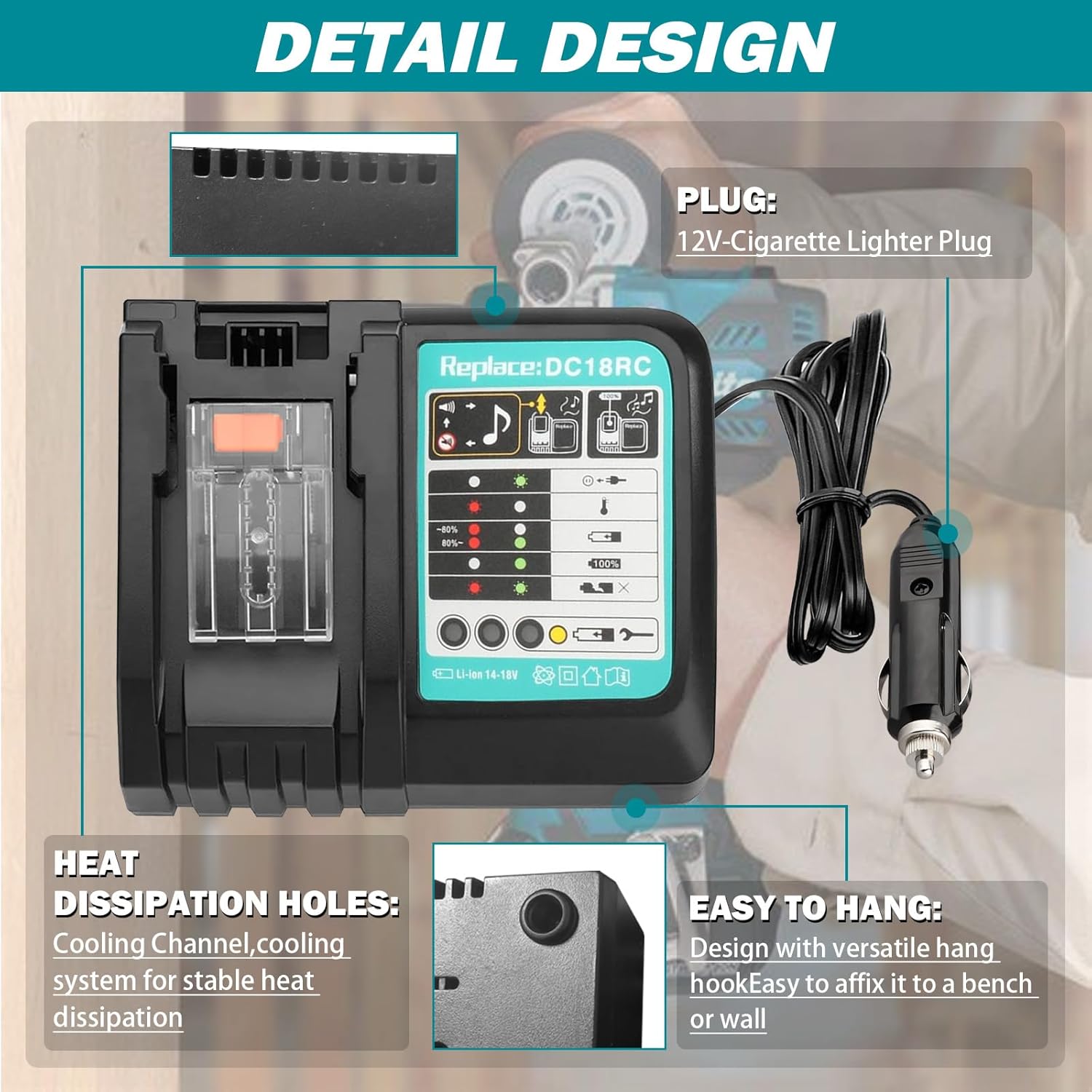 - Kompatible 14,4V-18V: Dieser Kompaktes Auto-Ladegerät ist perfekt für 18V BL1815 BL1830 BL1840 BL1845 BL1860 ; 14,4 V BL1415 BL1430 BL1440.BL1445 BL1460