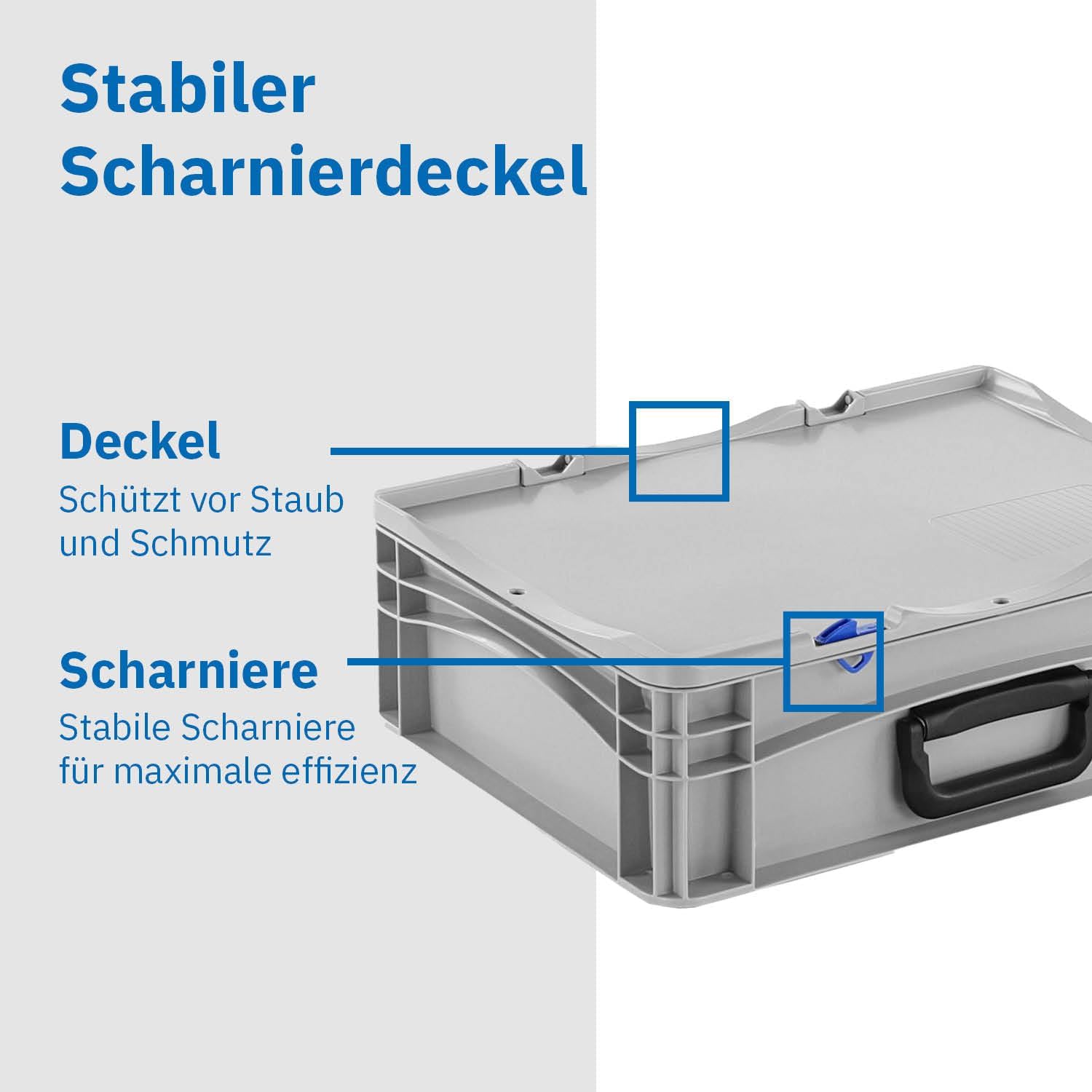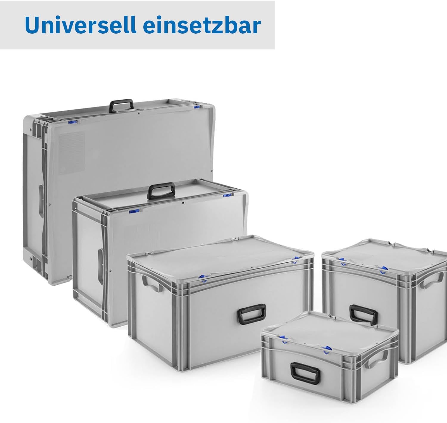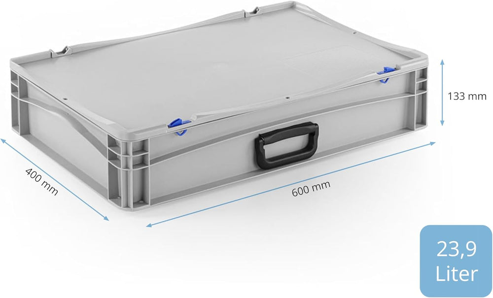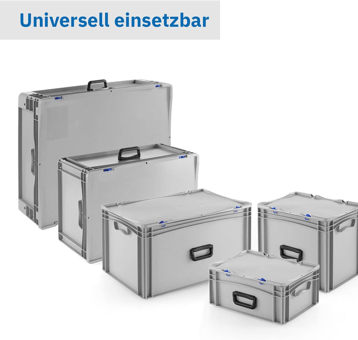 - 📏VIELSEITIGE ANPASSUNG FÜR INDIVIDUELLE BEDÜRFNISSE: Unser Koffergriff Set in grau bietet Ihnen fünf verschiedene Höhen und zwei verschiedene Grundmasse zur Auswahl. Dieser Behälter hat ein Aussenmass von 600x400x133 mm (Innenmass 567x368x117
