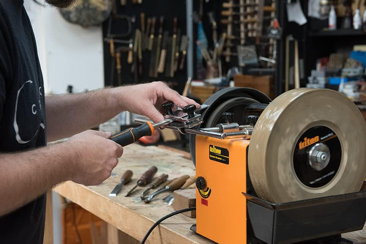 - Kühlwasserwanne hält den Schleifstein feucht und die Schleiffläche kühl, um ein Überhitzen zu vermeiden