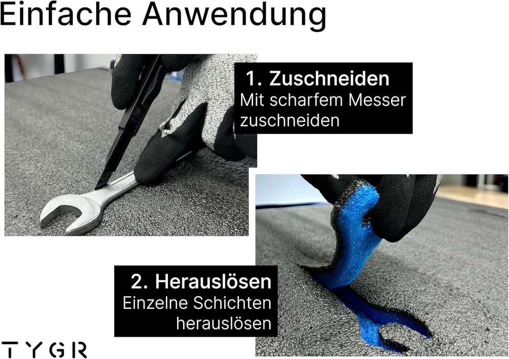 - HOCHWERTIG & GLEICHZEITIG KOSTENGÜNSTIG: TYGR Foam ist eine hochwertige Möglichkeit Werkzeug, Kameraequipment und vieles mehr zu einem günstigen Preis zu schützen
